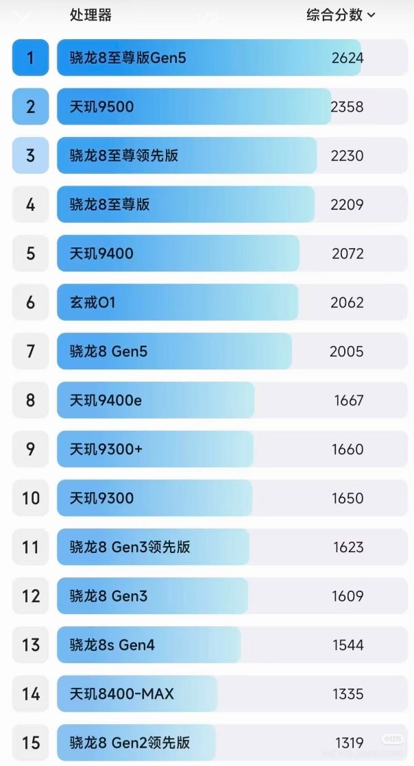 最新手机处理器性能排行榜!还是高通和联发科技的天下,大陆唯有小米玄戒O1有一席之地,希望以后有更多国产芯片崛起。芯片