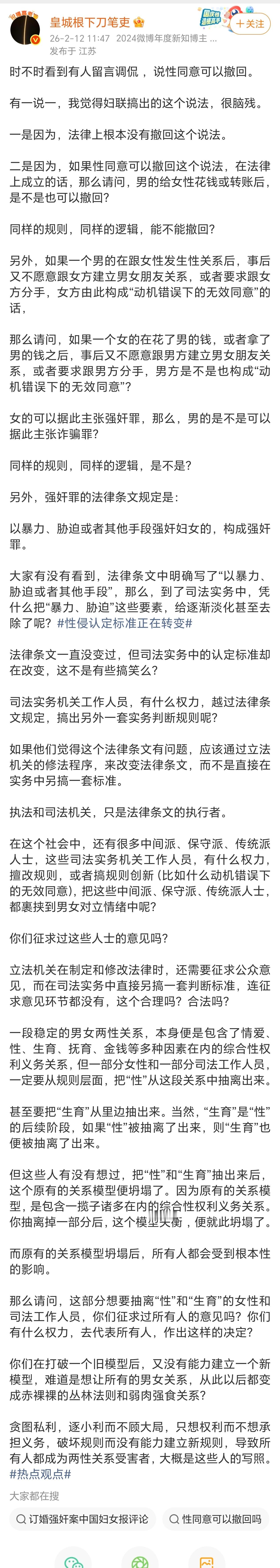 性同意能撤回?说好的“暴力胁迫”才算强奸,什么时候偷偷改标准了?征求过谁的意见?