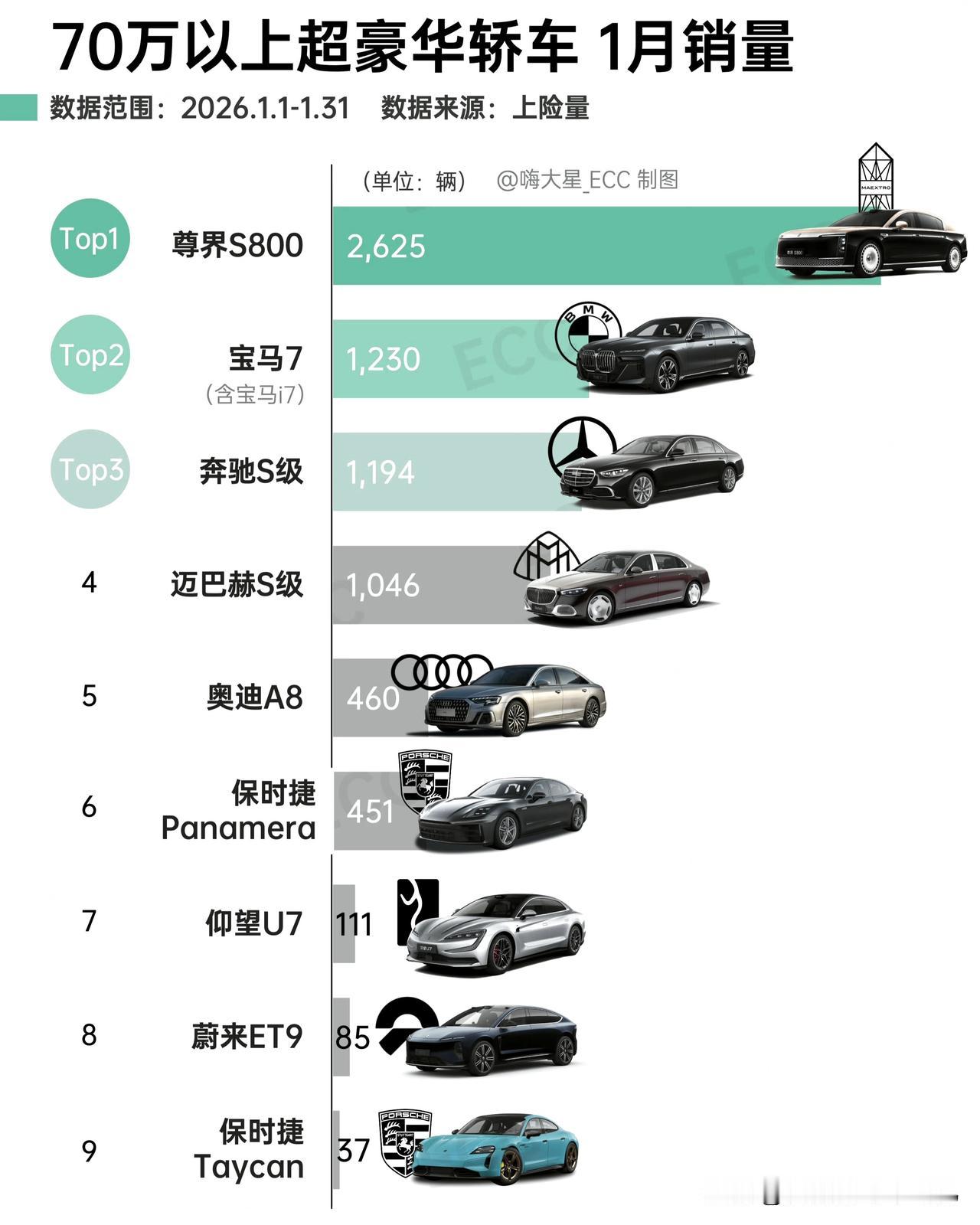 一月份的车市就像过完节后的食堂,热菜撤了,人流量骤减。新能源板块更是直接被砍掉一半多,大盘环比下滑55%,购置税优惠退潮、地方补贴断档,买家集体进入观望模式。 但就在这片冷淡里,尊界S800愣是端出了一份2617台的成绩单。同比、环比往下走不假,可放在整个细分市场,这数字不仅没掉队,反而把第二名和第三名加起来都按在地上。换句话说,不是尊界卖得少了,是其他人压根没跟上。 另一边,燃油车的大本营倒没怎么地震,大盘还算稳。可偏偏保时捷Panamera,像是被人悄悄拔了电源,销量直接砍到上个月的三分之一。没有政策打击,没有重大负面,就只是——突然没人买了。 同样是高端,一个在冷场里加座,一个在稳局里失温。这差距,已经不是产品力能解释的了。