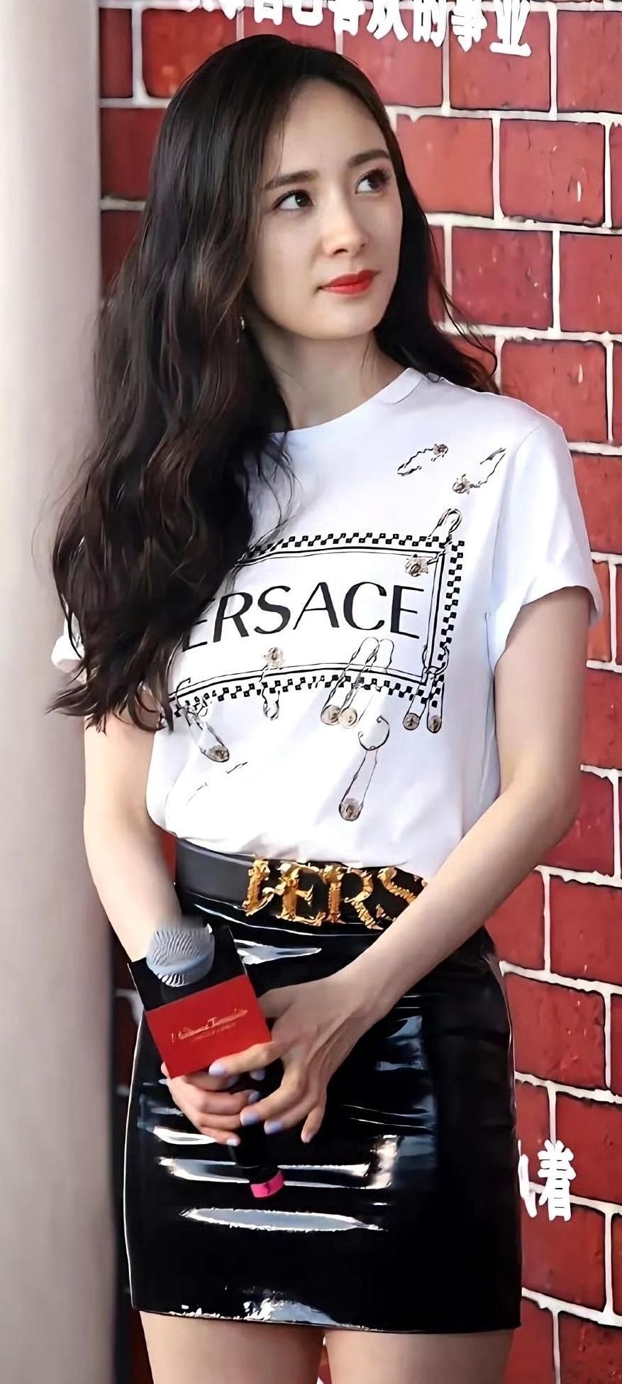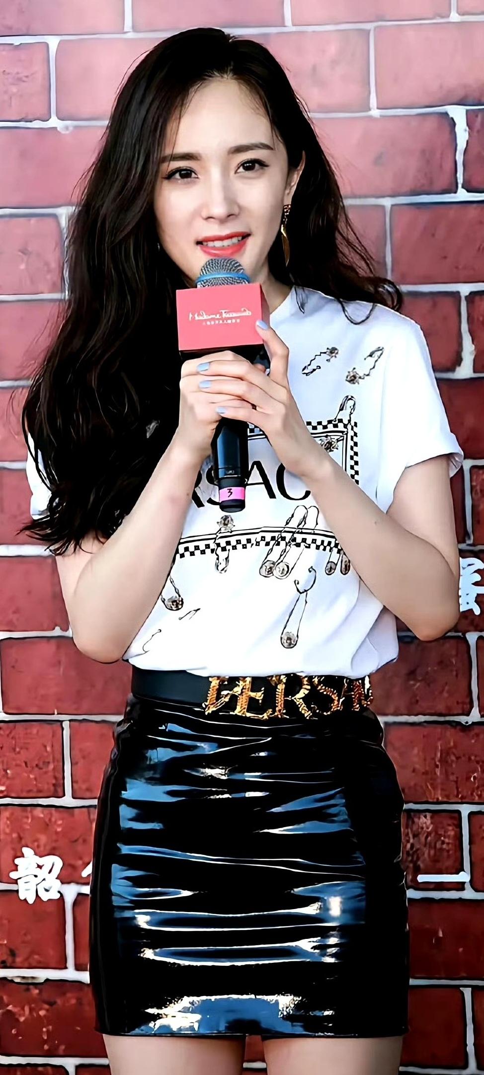 杀疯了!杨幂白T配黑皮裙美到封神,这大长腿直接焊死内娱审美天花板!杨幂 杨幂绝美造型 内娱颜值天花板 明星穿搭