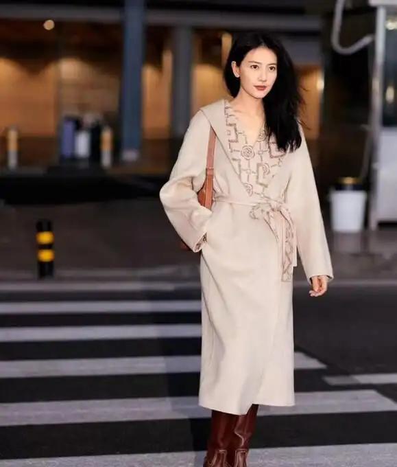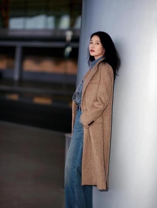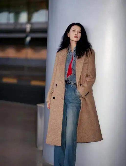 高圆圆卷发造型带火复古穿搭,大衣搭牛仔内搭高级时髦