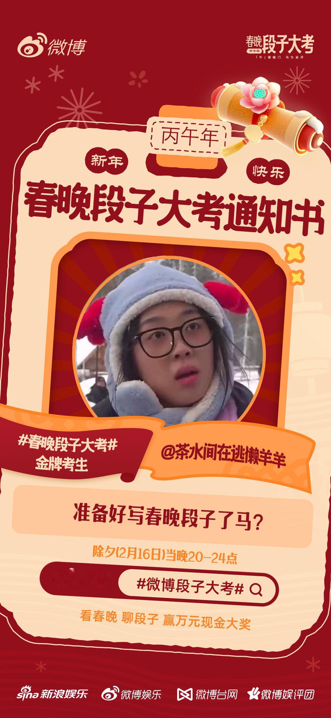 春晚段子大考活动开启!段子组长前来报道!除夕晚上20点正式开考,春晚我们不见不散!