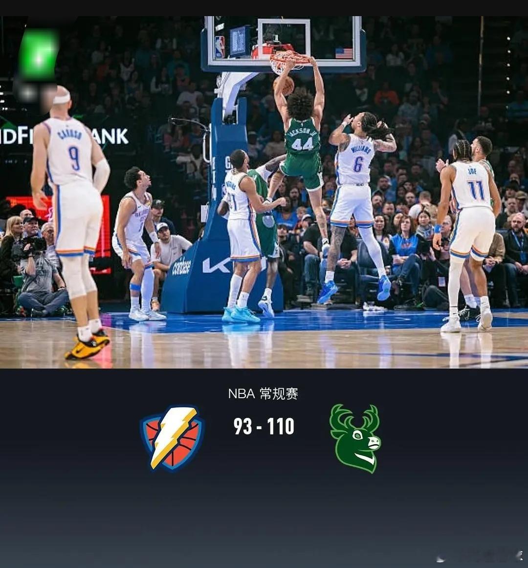 雄鹿110-93大胜雷霆,迪昂19+11+6+4帽弑旧主,霍姆格伦16+13