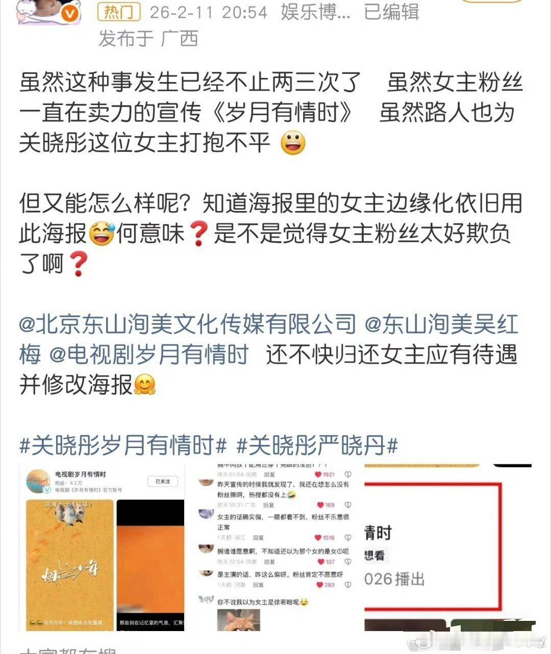好家伙,关晓彤怎么越混越差了?她和黄景瑜主演的新剧《岁月有情时》放了两次预告海报,居然每一次都把关晓彤边缘化,难怪会引起粉丝不满意,这剧一看就是扑,不知道彤姐为啥要接!岁月有情时