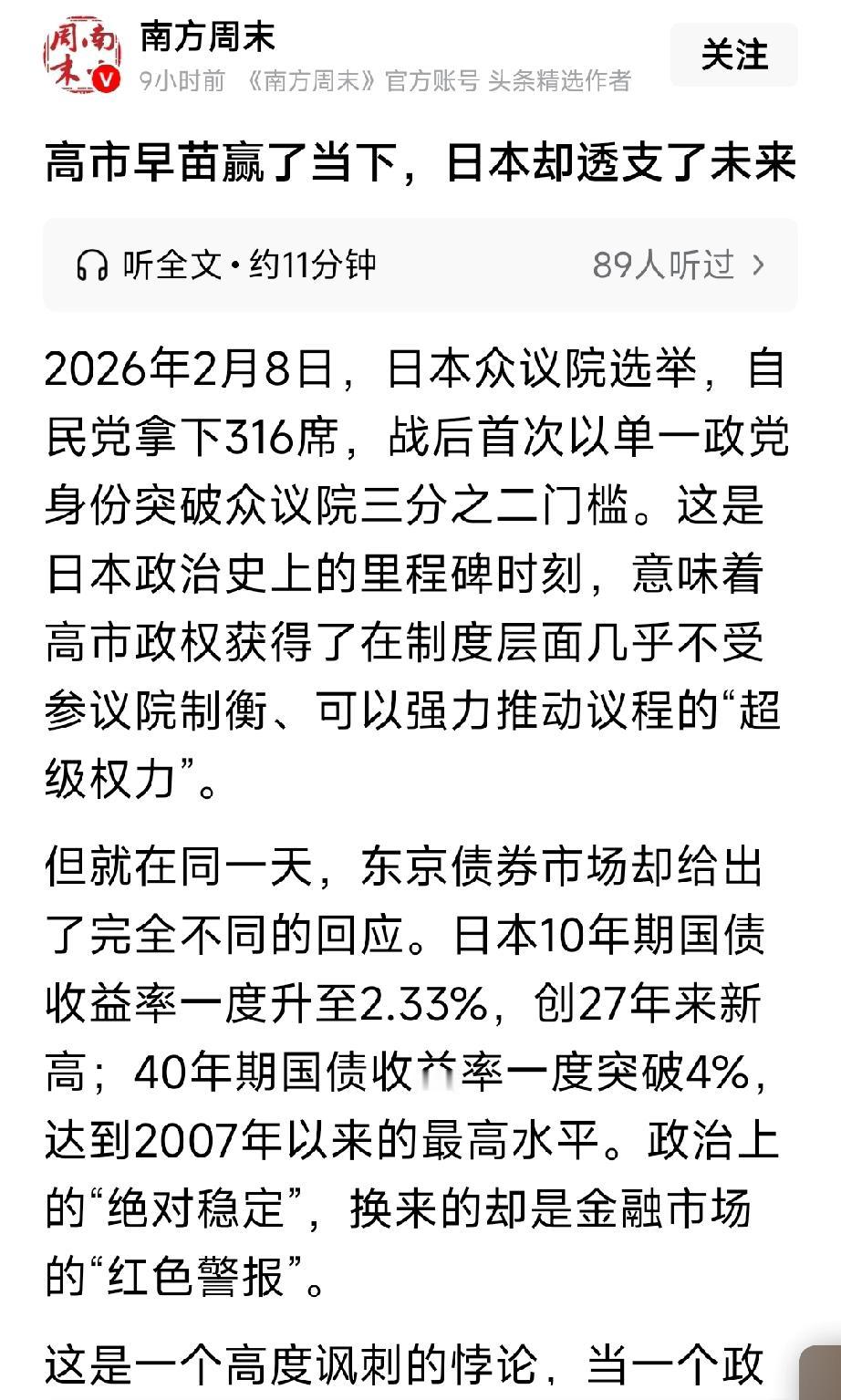 高市早苗虽然赢了当下,但是日本却透支了未来。自从高市早苗上台以后,日本通货膨胀加剧,物价上涨,老百姓连大米都买不起,然后股市泡沫愈发严重。马斯克已经是强弩之末,朱雀却充满希望,朝气蓬勃。
