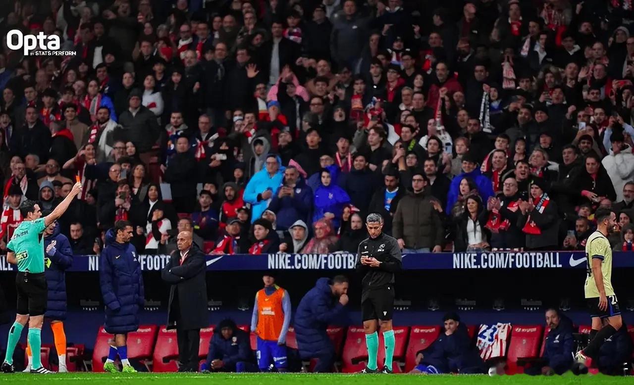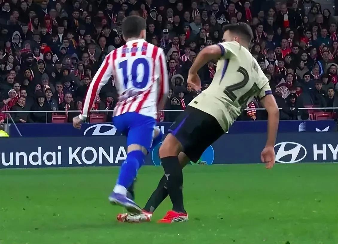 此后,巴萨在上半场又连丢3球,半场就0-4落后。下半场的第82分钟,埃里克-加西亚再次遭到重击。对手打反击,作为巴萨除门将外的最后一名防守球员,埃里克-加西亚狠狠踢倒了马竞的巴埃纳。