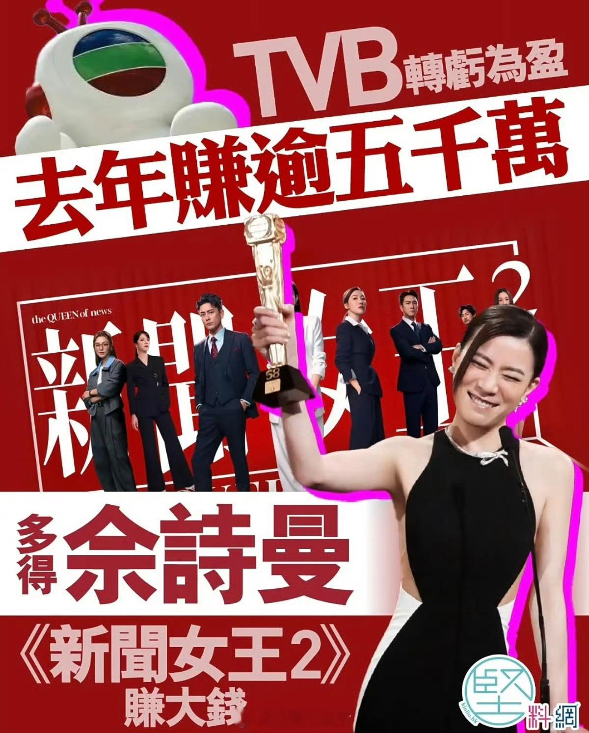 连亏7年TVB终于赚钱了 《新闻女王2》立了大功 吸引了超30个品牌合作 单集广告高达11条。公司预计2025年盈利5000万港元,这也是公司2018年以来首度盈利