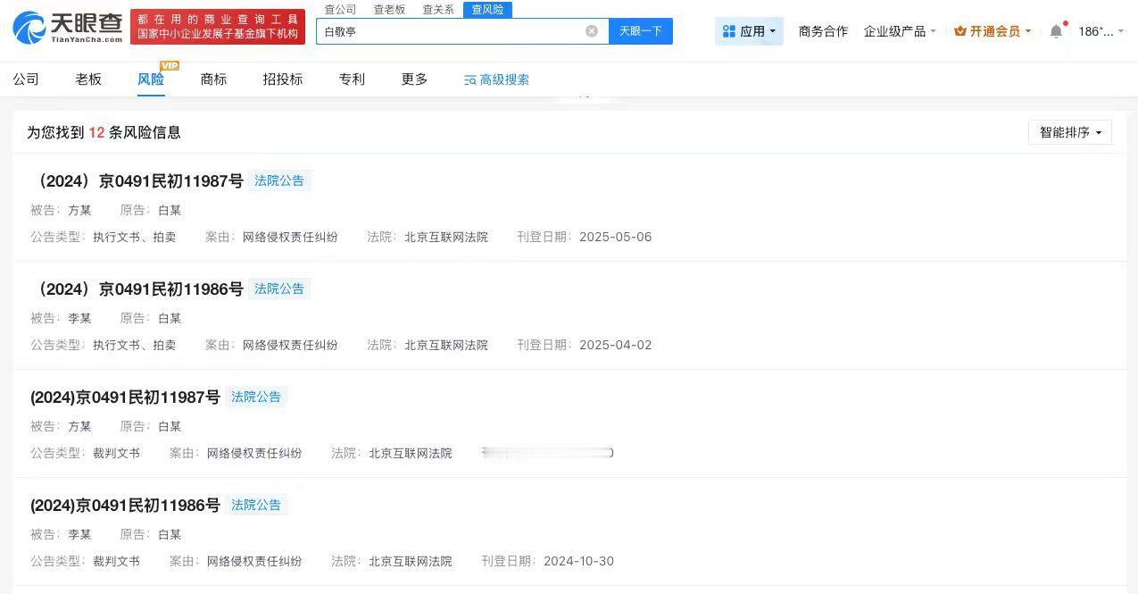 白敬亭白敬亭多次维权胜诉白敬亭维权案件进展近日,受托代理白敬亭维权案件律师团队发布律师声明。声明显示,律所近期代理白敬亭先生在诉维权案件共5件,涉及多名用户。天眼查法律诉讼信息显示,此前,白敬亭已多次发起网络侵权责任纠纷诉讼,被告涉及多个自然人。其中,李某被判向原告白敬亭公开赔礼道歉,并赔偿经济损失等合计1.5万元;方某被判向原告白敬亭公开赔礼道歉,并赔偿精神损害赔偿金等合计2万元。