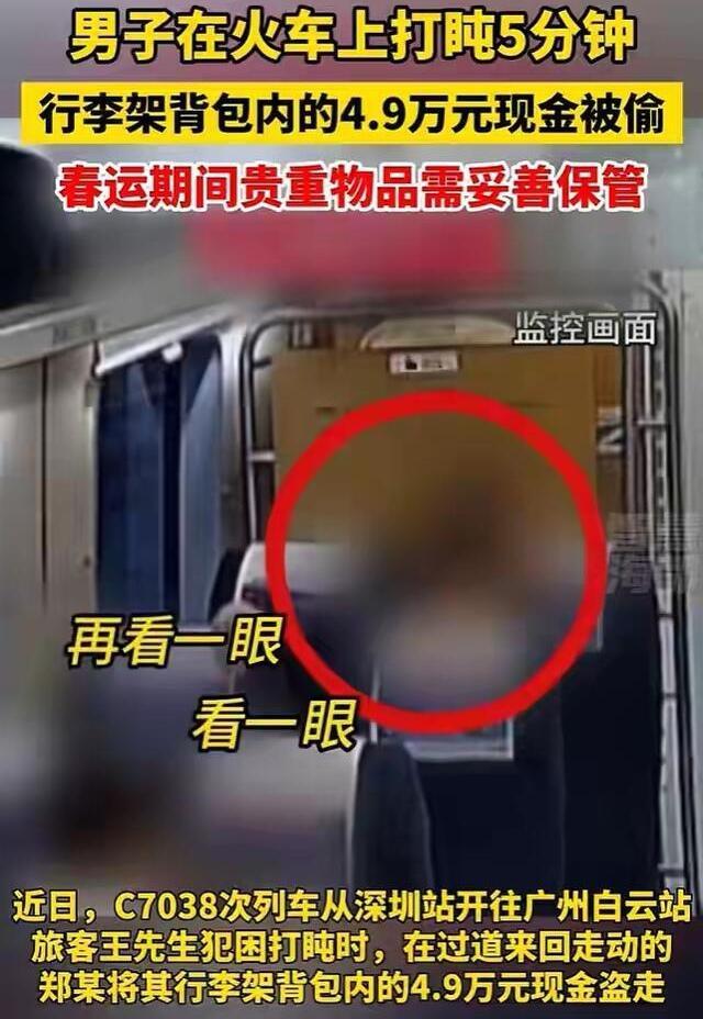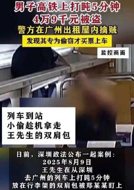 你看这个新闻了吗?真是火车上的惊魂一幕。 事情是这样的:王先生坐火车出门,路上累了,就在座位上眯了大概五分钟。谁知道就在这短短几分钟里,被一个叫郑某某的盯上了。这人一直在车厢里转悠,眼睛就盯着行李架看,最后选中了王先生的背包。 趁着王先生睡得熟,郑某某悄悄把包拿下来,一打开,好家伙,里面整整四万九千块现金。他眼睛都直了,二话不说把钱全塞自己口袋里,然后把空包扔回行李架,大摇大摆就下车跑了。 等王先生醒来一摸包,钱全没了,当场人都傻了。赶紧找列车员帮忙,还报了警。警察调了监控,很快就锁定了郑某某,最后在广州一个出租屋里把他给抓了。 现在案子是破了,郑某某也肯定得受法律惩罚。但网上也有人议论,说王先生自己带这么多现金,还在公共场所大意睡觉,是不是也有责任? 要我说,这事关键还是在郑某某。你偷东西就是犯法,没得洗,别人再大意也不是你犯罪的理由。当然,咱们出门在外确实得自己多留个心眼,贵重物品得看紧点,尤其是坐火车、公交这种人杂的地方。但说到底,该骂的、该罚的,首先还是那个伸手偷钱的人。 大家觉得呢?爱情是可以突破时间而永恒吗?