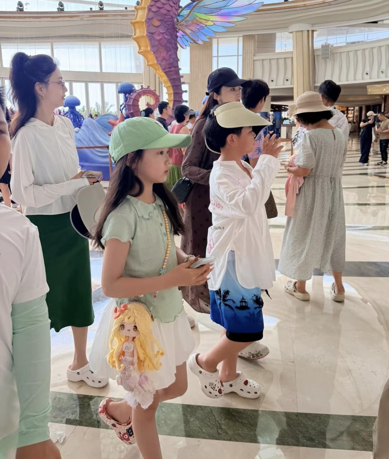 佟丽娅带着10岁儿子朵朵到海南度假,董璇一家三口也在,朵朵和小酒窝看起来玩得好开心! 朵朵长得非常像爸爸陈思诚,脸型五官几乎就是陈思诚的翻版,看起来略显成熟,有着超越年龄的老成。 小酒窝遗传了妈妈董璇的美貌,清丽脱俗,皮肤非常好。 据悉,佟丽娅和董璇是认识了二十多年的好闺蜜,两人的孩子年龄相仿,自小一起长大,还念同一所学校,所以两家人经常一起见面,感情非常深厚!
