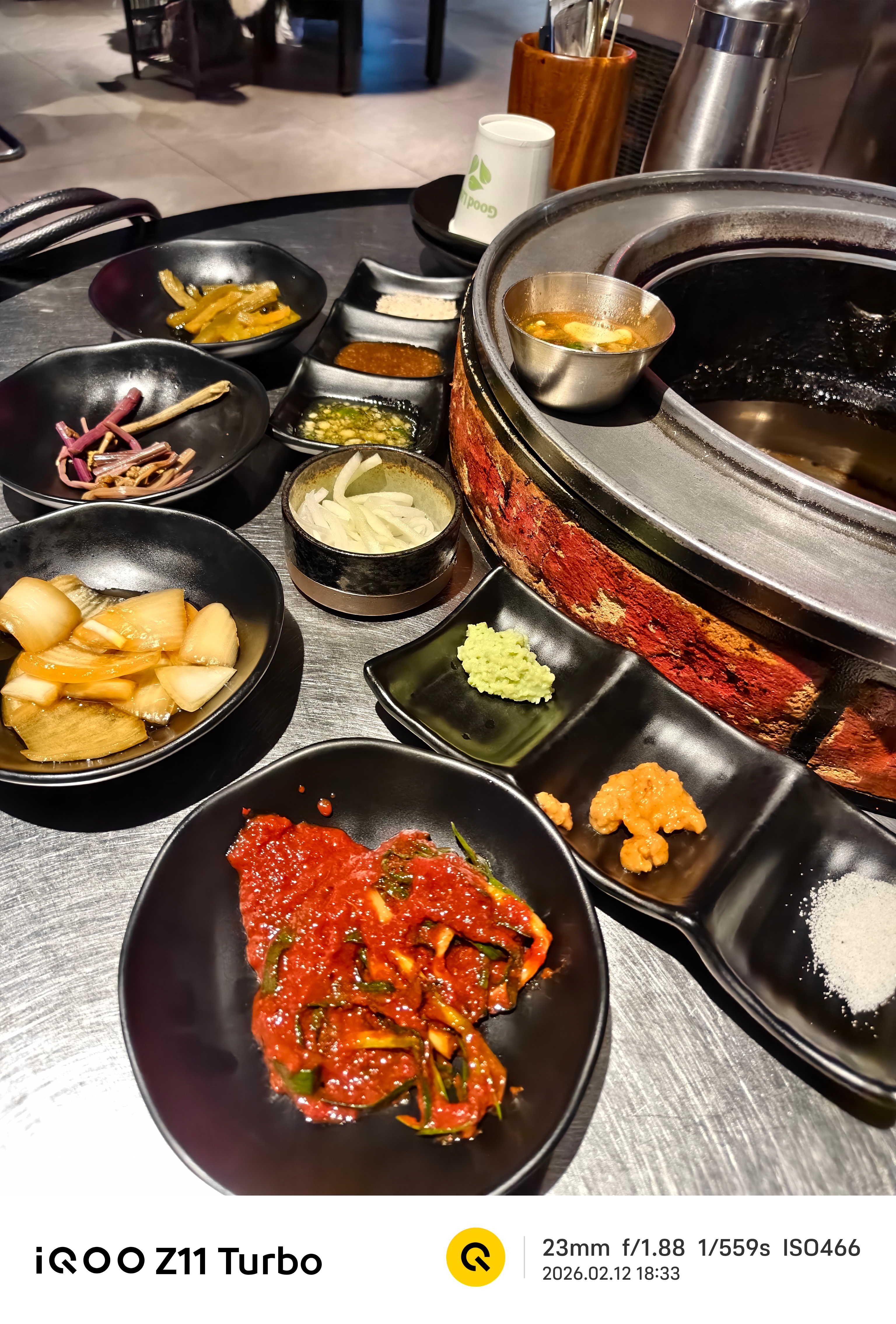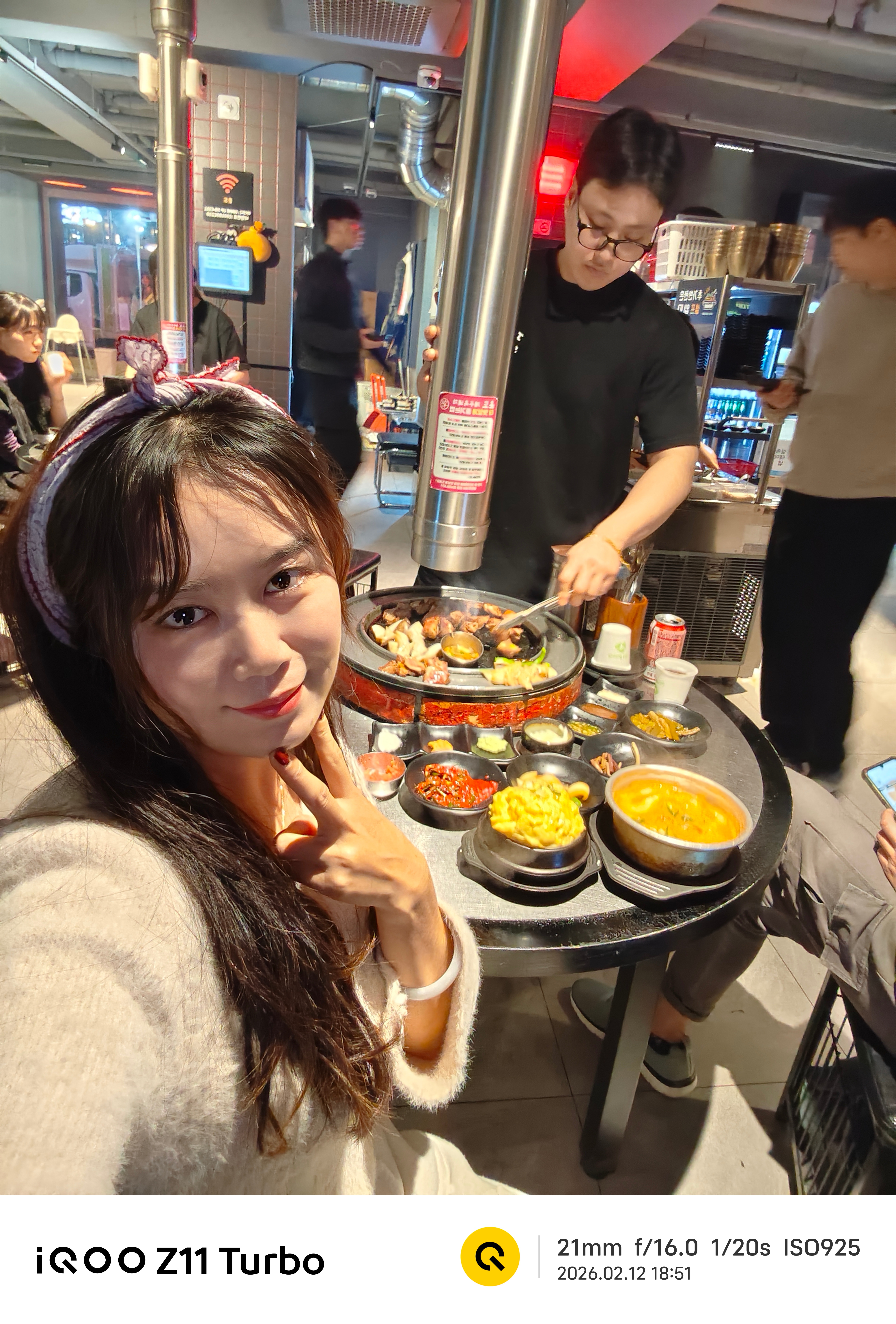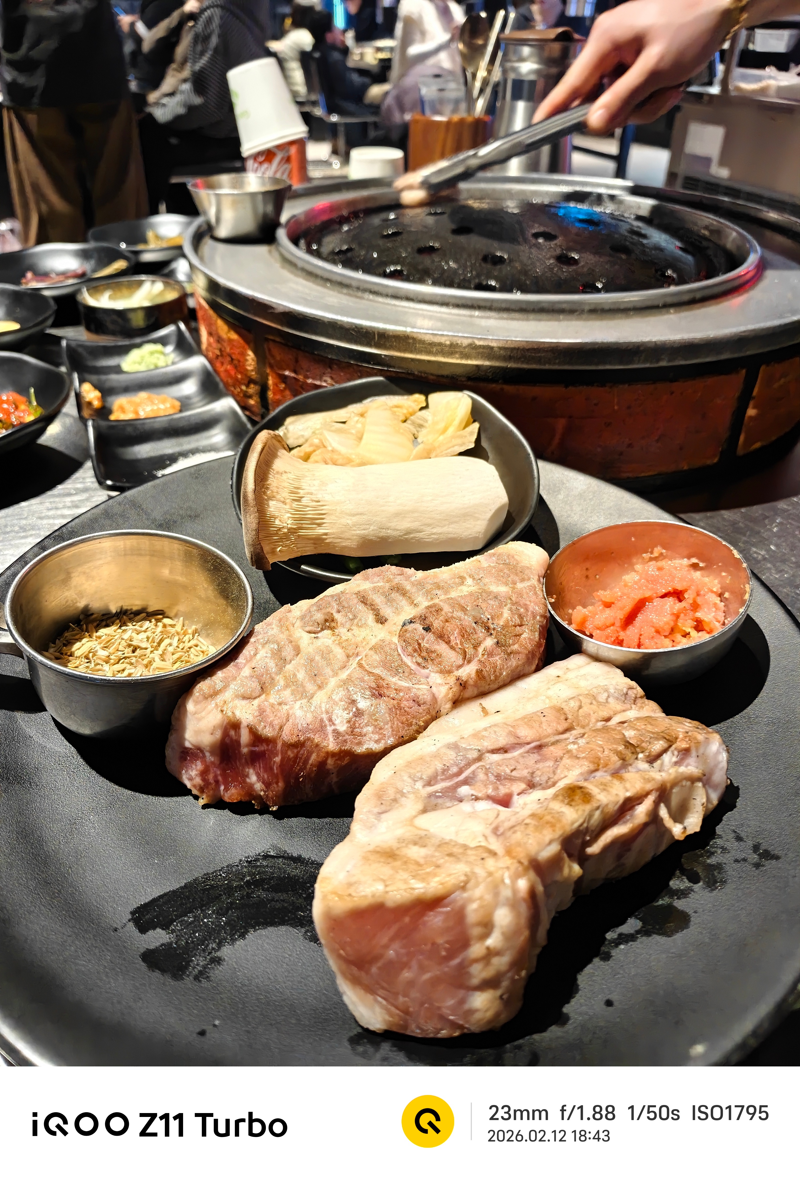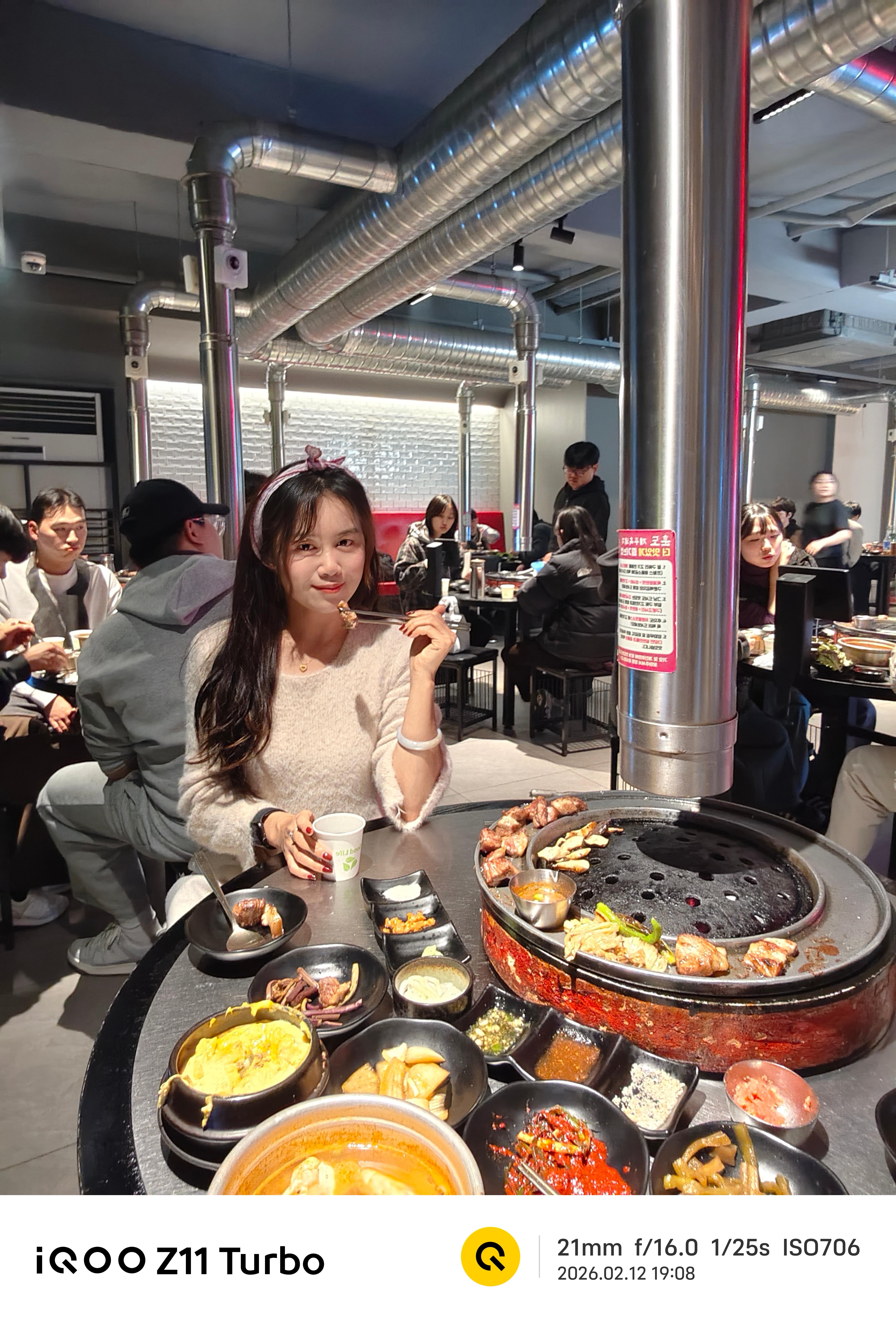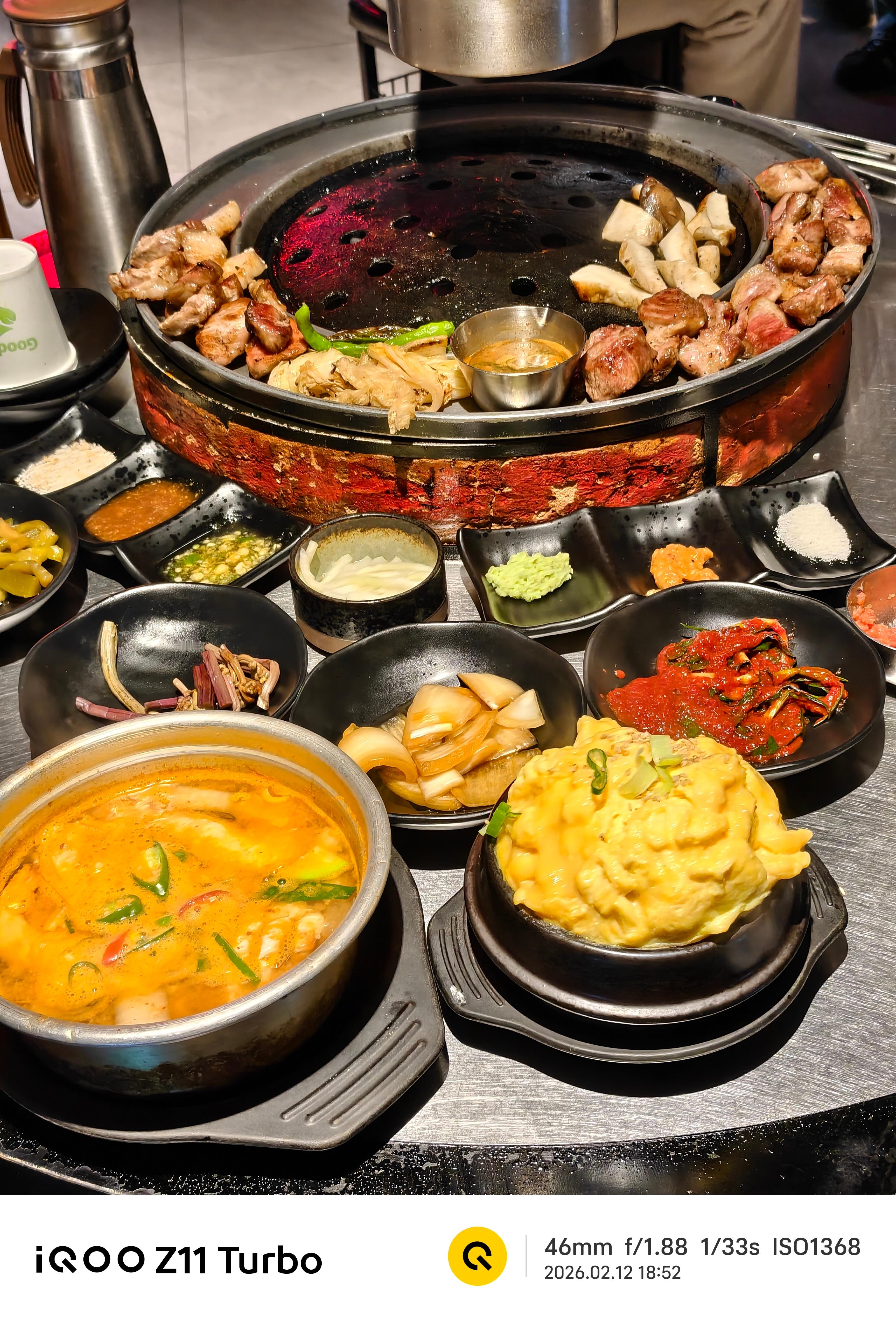 😋我和朋友品尝了他们的黑猪颈肉和黑猪五花肉,不知道为什么到嘴里之后这么好吃,开头我看到帮我们烤肉的小哥他是用大火先烤一下,然后在炭火里面放了谷子熏香,这个方法很自然!本地人推荐的餐厅果然很好吃!蒸鸡蛋和大酱汤也很新鲜,我们两个人都吃完了。iqooiqoo z11 turbo 韩国·济州市