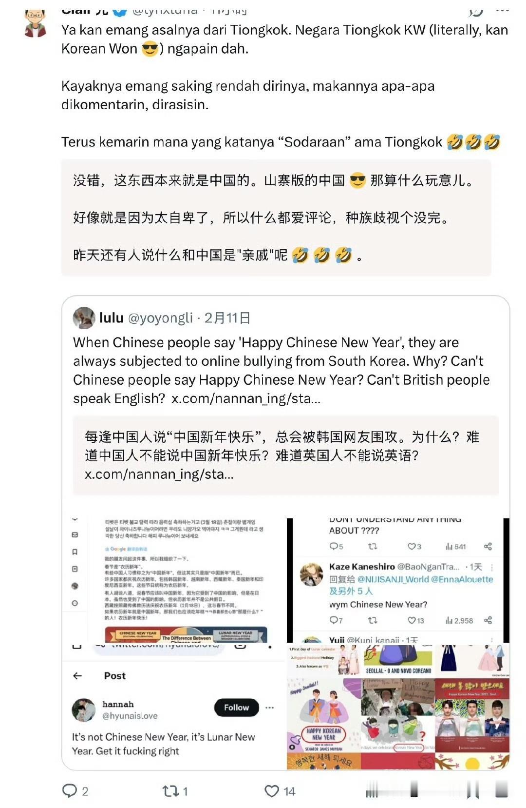 韩国和东南亚网民的口水战,现在东南亚网民,尤其是印尼马来西亚网民,大量使用中文相关梗痛击韩国网民。