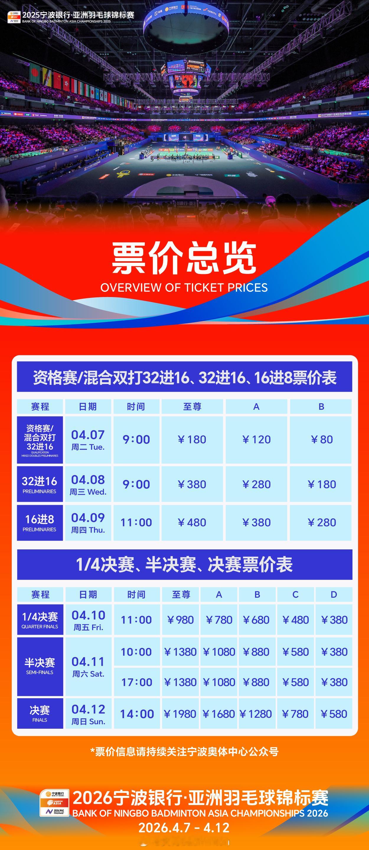 2026年亚洲羽毛球锦标赛票价出炉