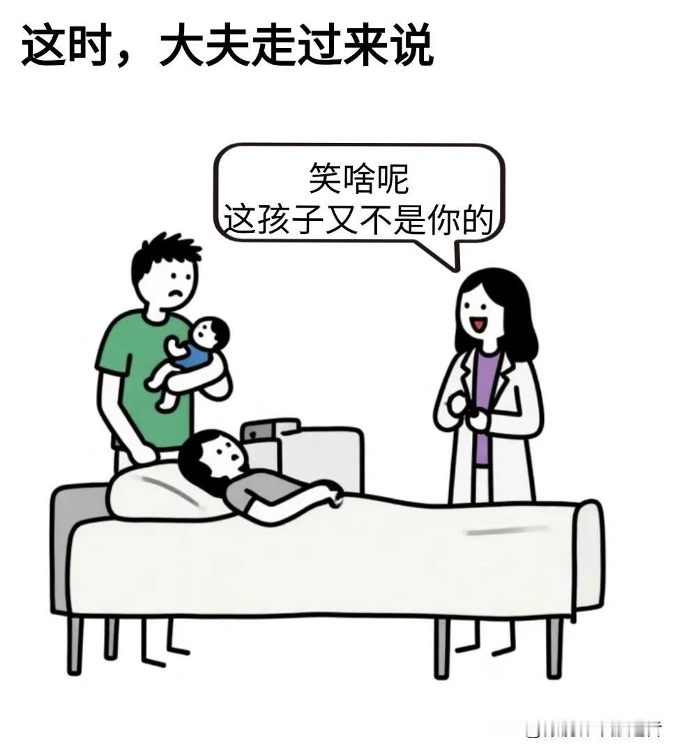 开心漫画:兄弟当爹了,抱着孩子乐开了花,医生:笑啥?这孩子又不是你的。兄弟媳妇立马就哭了:对不起,那天我喝多了。医生:这才是你的
