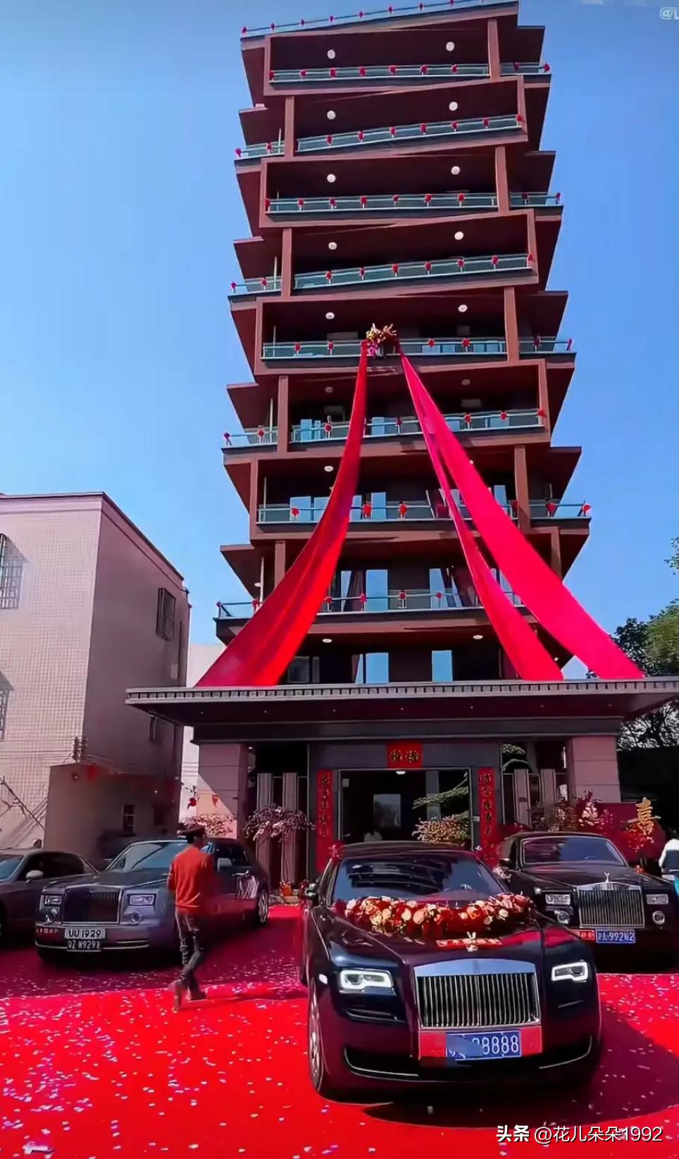 这是哪家土豪自己修的农村电梯房,共十层,有点儿像雷峰塔了