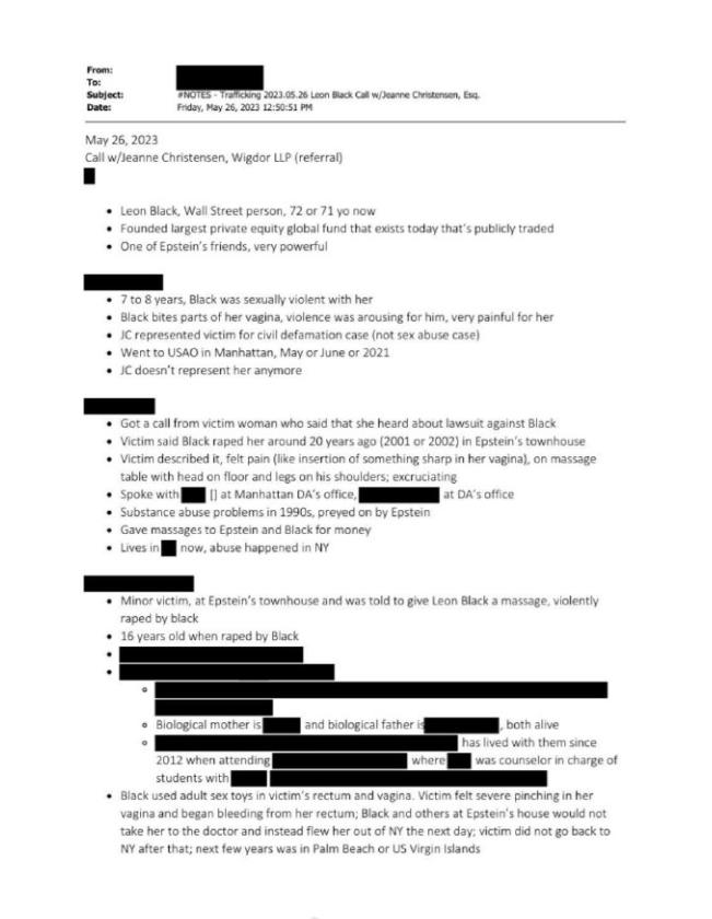 “暴力咬伤7岁女童阴部,性虐待多名女性!”这是刚刚曝光的爱泼斯坦文件中,涉及全球最大的上市私募股权基金——阿波罗全球管理公司、美国亿万富豪莱昂·布莱克的罪行。除一名年仅 7 岁的未成年人,一名年仅16岁的少女外,还有多名女性已经指控布莱克的性虐待,而且这些指控每一个都铁证如山,绝非凭空捏造,越挖越让人脊背发凉。 可能很多人对莱昂·布莱克没概念,先给大家说句实在的,这人可不是一般的富豪。他是阿波罗全球管理公司的联合创始人,这家基金有多牛?2024年上半年就狂赚近30亿美元净利润,在全球私募圈说一不二,连派拉蒙的电影工作室他都敢出价110亿美元收购。 而布莱克本人,曾登上福布斯全球富豪榜前300名,手里攥着92亿美元财富,还是四个孩子的父亲。表面上他是温文尔雅的金融大佬,没事还收藏蒙克的《呐喊》、毕加索的雕塑,一副上流社会精英的模样,背地里却干着连恶魔都不齿的勾当。 被他伤害的孩子里,最小的才7岁,那个无辜的小姑娘,不仅遭到残忍的性虐待,还被他暴力咬伤阴部。 想想一个7岁的孩子,本该在父母怀里撒娇,却要承受这样毁灭性的伤害,这辈子的阴影都挥之不去。还有一名16岁的少女,正值青春懵懂的年纪,也没能逃过他的魔爪,被他长期控制、肆意伤害。 除了这两个未成年孩子,还有多名成年女性站出来,撕开了布莱克的伪装。其中最受关注的,是一名俄罗斯前嫩模古泽尔·加涅娃,她直接把布莱克告上了法庭,字字泣血地控诉着自己的遭遇。 加涅娃说,自己20岁那年刚经历感情失败,还是个单身母亲,没什么社会经验,根本经不住布莱克的诱惑。 布莱克当时以帮助她摆脱模特生涯、规划人生为由,主动邀请她吃高档晚餐,还装作深情的样子给她讲人生道理,一步步获取她的信任。 可没想到,晚餐结束后,布莱克就露出了真面目,直接把她带到一间公寓,不顾她的拼命反抗,对她实施了性虐待。 更恶心的是,后来加涅娃想和他彻底断绝联系,布莱克却用金钱和虚假承诺控制她,不仅给她贷款让她读大学,还谎称能安排她去高盛面试,一步步拿捏住她的软肋。 有一次,加涅娃已经病重卧床一个星期,连起身的力气都没有,布莱克却不请自来,强行闯入她的住所,再次对她施暴、羞辱,还故意折磨她,从她的痛苦中寻求快感。这种扭曲的心理,简直让人毛骨悚然。 说到这,就必须提臭名昭著的爱泼斯坦——那个靠性侵未成年人发家、最后在监狱里“意外”自杀的恶魔。布莱克和爱泼斯坦的关系,远比大家想象的更密切,两人早在20世纪90年代就认识了。 从2012年到2017年这五年里,布莱克足足给爱泼斯坦支付了1.58亿美元,对外宣称是用于税务和遗产规划。可这话谁信啊? 这笔钱比他给其他任何财务顾问的费用都多几十倍,甚至超过了很多世界500强CEO的年薪,美国参议院财政委员会都曾公开质疑,这笔钱根本不是什么咨询费,里面藏着不可告人的秘密。 更可疑的是,爱泼斯坦曾在邮件里给布莱克写过,说自己“为了你,几乎什么都愿意做,包括众所周知的事和一些需要保密的事”。结合爱泼斯坦的所作所为,再看看布莱克的罪行,这句话里的深意,不用多说大家也能猜到。 面对所有指控,布莱克不仅全盘否认,还反过来反诉加涅娃敲诈勒索,说自己是被她威胁,才支付了大量金钱,只为保住家人的颜面。可他的辩解,根本站不住脚,全是漏洞。 2021年,因为和爱泼斯坦的关系引发巨大争议,加上外界的调查压力,布莱克被迫提前卸任阿波罗CEO的职位,连纽约现代艺术博物馆董事会主席的位置也丢了。 2023年,他又偷偷和爱泼斯坦私人岛屿所在的美国维尔京群岛达成和解,支付了6250万美元,试图用钱摆平一切。要是他真的清白无辜,何必卸任职位、花钱和解? 这些反常的举动,反而坐实了大家的猜测。说白了,他就是仗着自己有钱有势,觉得能用财富和人脉掩盖自己的罪行,觉得那些受害者翻不起什么浪花。 最让人愤怒的是,布莱克这样的亿万富豪,手握巨额财富和强大人脉,本该以身作则,却利用自己的特权,肆意伤害弱势群体,甚至对未成年人下手,简直丧心病狂。 爱泼斯坦死了,可他背后的保护伞、那些和他同流合污的人,不该就此逍遥法外。布莱克只是被曝光的一个,谁也不知道,还有多少受害者因为恐惧和威胁,没能站出来发声,还有多少像布莱克这样的“伪君子”,披着精英的外衣,干着恶魔的勾当。 希望这份曝光的爱泼斯坦文件,能成为揭开真相的钥匙,能让布莱克为自己的罪行付出应有的代价,也能给所有受害者一个公道,更能警示那些手握特权的人:善恶终有报,再有钱有势,也不能凌驾于法律和道德之上。