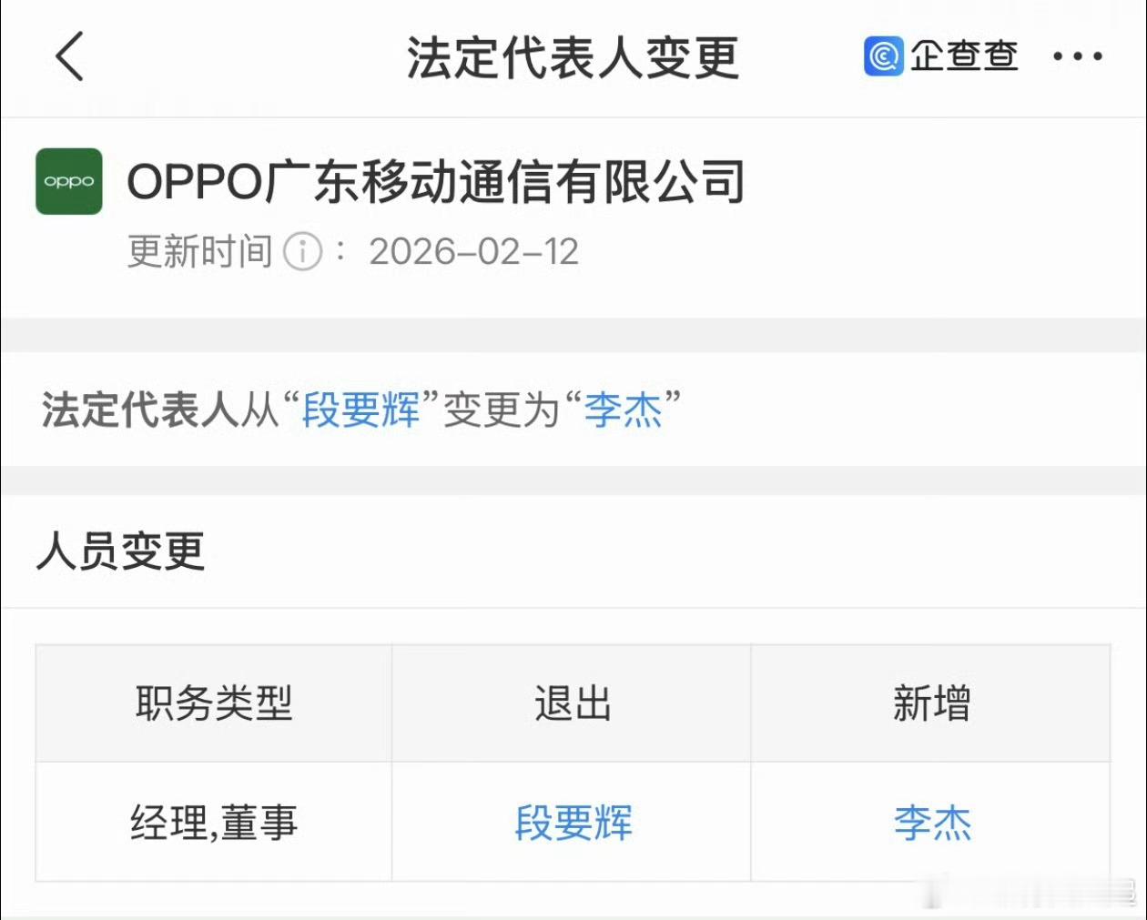 OPPO高管变更,李杰成为公司法人 !不知是哪个李杰