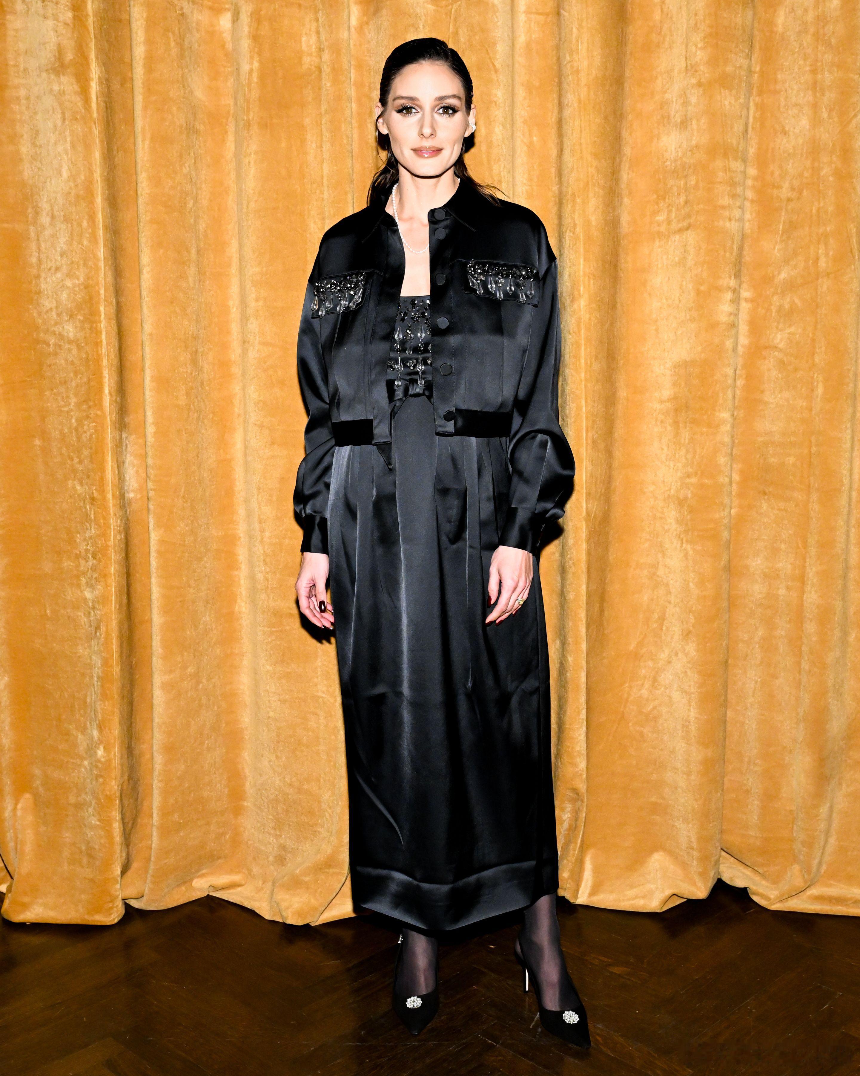 Olivia Palermo奥利维亚巴勒莫在纽约时装周期间出席观看Cinq à Sept品牌的新一季大秀,巴勒莫小姐搭配同一系列的黑色裙装与夹克出席