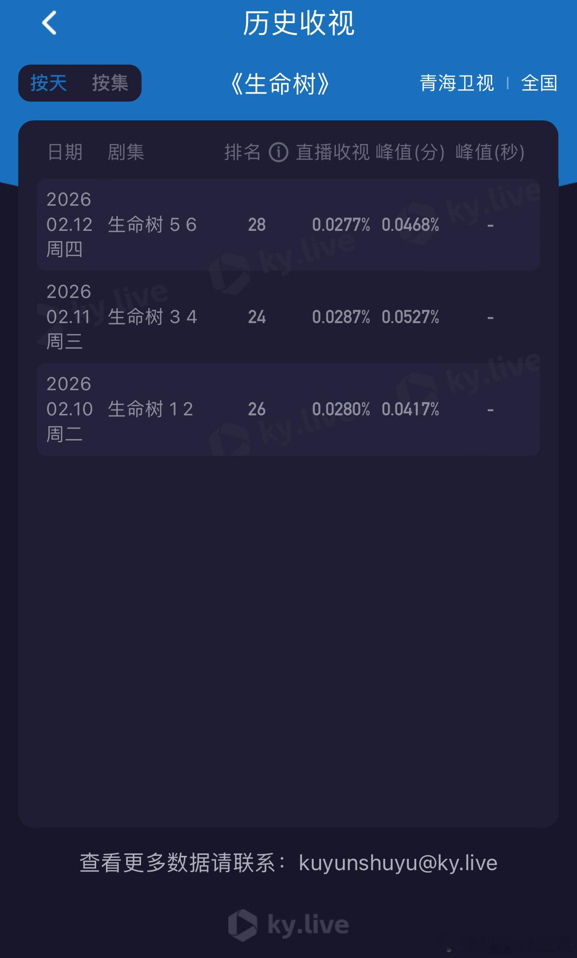 杨紫人民日报撰文看了眼生命树,酷云收视率1.7519%新低了,估计CVB又将迎来一个新低。青海收视也是新低,没到0.1%,0.0277%