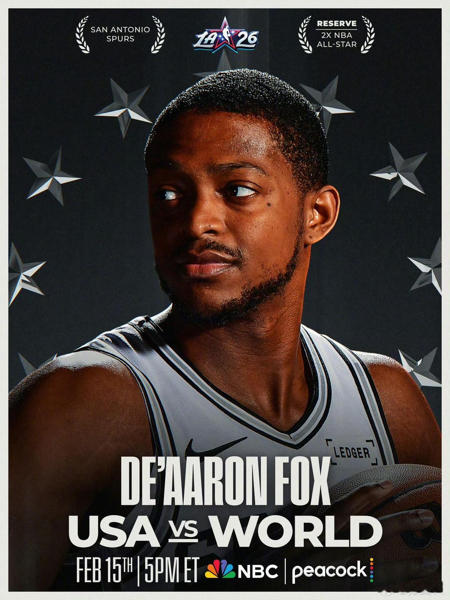 NBA总裁萧华指定马刺后卫福克斯递补雄鹿球星字母哥,出战2026年NBA全明星赛。福克斯将加入美国星条队,鲍威尔则从美国星条队调整至世界队。