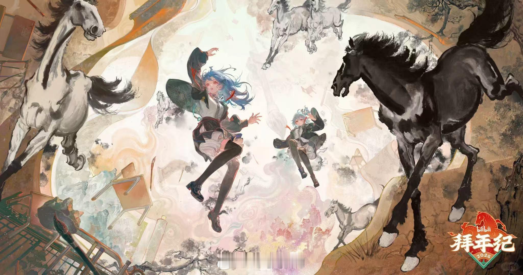 2026拜年纪神图盘点 今年拜年纪的图真的每一张都想右键,水墨晕染那张的笔触特别流畅,像真的在宣纸上慢慢化开,2233的发丝都带着墨韵,太有高级感了。