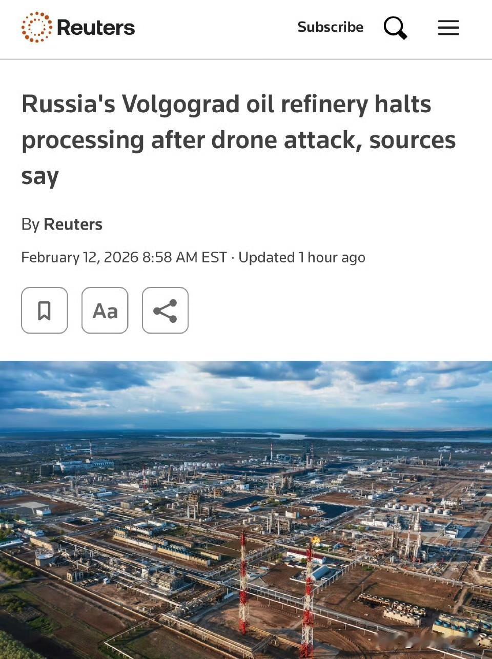 路透社报导,伏尔加格勒(Volgograd)炼油厂在乌克兰无人机袭击后停止运作。 这家俄罗斯卢克石油(Lukoil)炼油厂 在遭受乌克兰无人机袭击引发火灾后,已停止原油加工。AVT-1 装置的日处理能力约为 18,600 吨原油。2024 年,该工厂共加工 1,350 万吨原油(约占俄罗斯总量的 5%),并生产柴油 600 万吨、汽油 190 万吨、燃料油 70 万吨。 俄乌战争