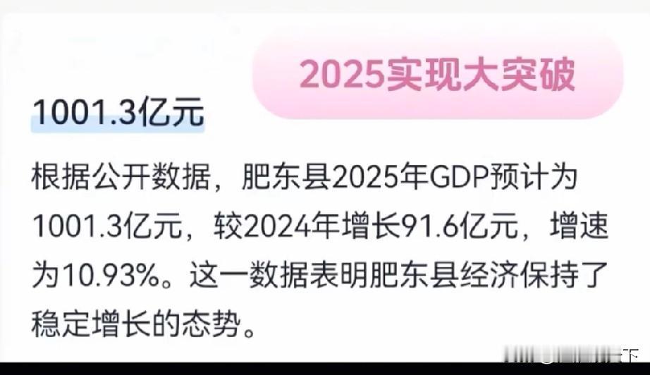 合肥市肥东县官宣gdp破千亿,安徽省第三个千亿县 2月12号,安徽省合肥市肥东县官宣2025年成功破千亿,成为安徽省第3个千亿gdp县,数据是1001.3亿元,至此合肥老三县,肥西,长丰,肥东全部迈入千亿大关。 合肥管辖的另外一个县庐江县775.1亿元,代管的县级市巢湖市数据是698.7亿元,距离千亿的目标还很遥远。 安徽省十强经济县市位次也出炉,分别是:肥西县,长丰县,肥东县,天长市,庐江县,无为市,巢湖市,当涂县,濉溪县,凤阳县。 肥东县官宣成绩单,也证明了之前网传数据的真实性。肥东县肥西县 合肥千亿县 肥西gdp 肥东发展规划 肥东地位变化 肥东行政 肥东振兴