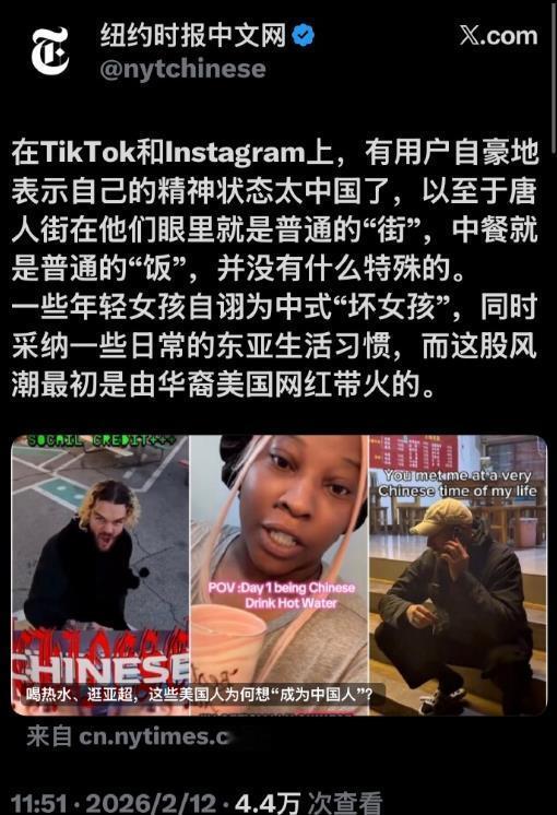 韩国人不服,为什么现在外国人都要争当中国人?以前韩流最火的时候,全世界都在跳江南Style、学韩语、追爱豆,但也仅此而已,没人真想说“我想当韩国人”。可现在呢?外国网络上冒出一大批“精神中国人”,关键还不是我们主动去推什么文化输出,而是美国人自己在那学泡脚、煮苹果茶、喝热水,跟着中文互联网过日子。 这事搁以前,根本不敢想。 那问题来了:凭什么? 说白了,就俩字——真香。 美国人“看病贵、看病难”,不是开玩笑的。小病小痛,约个医生要排几个星期,很多人干脆去超市买止疼药顶着。可药一停,该疼还疼,只能不断重复买药,止疼,再买药的过程。 然后他们刷到了中式养生。试了试泡脚,睡眠好了;喝了几天苹果茶,嗓子不咳了;改喝热水,胃舒服了。没吃药,没进医院,炎症下去了,整个人精神了。 这种冲击是颠覆性的。原来健康不一定靠药,可以靠习惯。 甚至有人开始怀疑:西方人天天喝冰水、吃冷食,真是因为“体质适合”吗?有没有可能……这根本就是一套被包装出来的生活方式,甚至是一个巨大的商业套路?不健康了才好卖药嘛。 而除了“养生真有用”,另一个让外国人对中国身份产生向往的,是肉眼可见的国力。 韩国最大的误区,就是把自己的宣传当成了实力本身。数据上看,韩国GDP确实不低,韩剧里也把首尔拍得像未来都市。可真放到东亚这块牌桌上比,谁都知道分量几斤几两。 什么叫国力?是你不用解释自己有多强,别人能从你的生活方式里感觉到一种“安全、体面、从容”。 外国人学泡脚、学喝热水,不是图热闹,是图好用。他们想当“精神中国人”,不是想去哪个具体的国家,是想拥有那种“不用硬扛着”的生活。 这事,拼的就是综合国力,不是几个偶像蹦蹦跳跳就可以的,所以韩国人你可以不服,也可以委屈,但没有办法,只能接受。