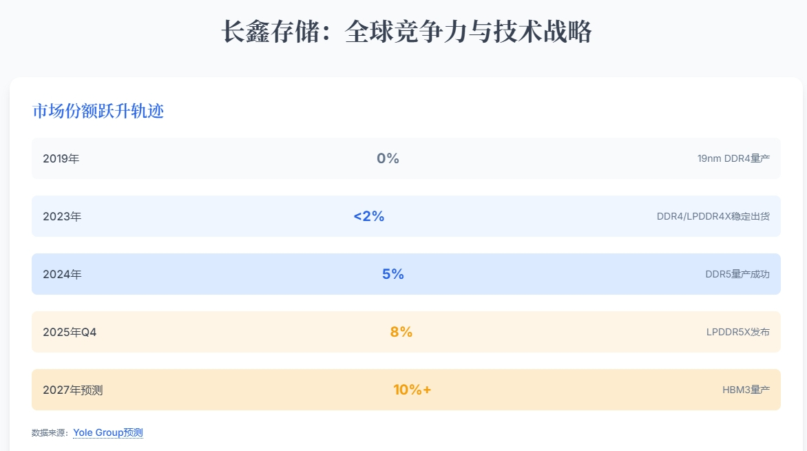 DDR5是2021年出来,电压1.1V,速率4800-8400 MT/s,一代代的标准就是内存速度翻倍。革命性进步是用EUV光刻机工艺简单多了,良率高、成本低。只有长鑫继续用DUV光刻机做DDR5,但16nm就下不去了,外国用EUV的做10nm甚至更低。这导致长鑫的DDR5只能做中低端PC和服务器,而HBM、高频DDR5高端市场被三星、海力士、美光三巨头垄断。