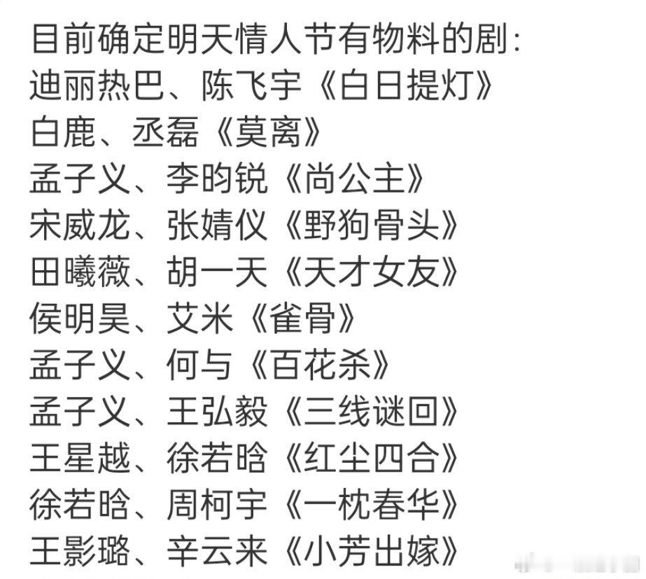 目前已定明天有情人节物料的剧,有感兴趣的么
