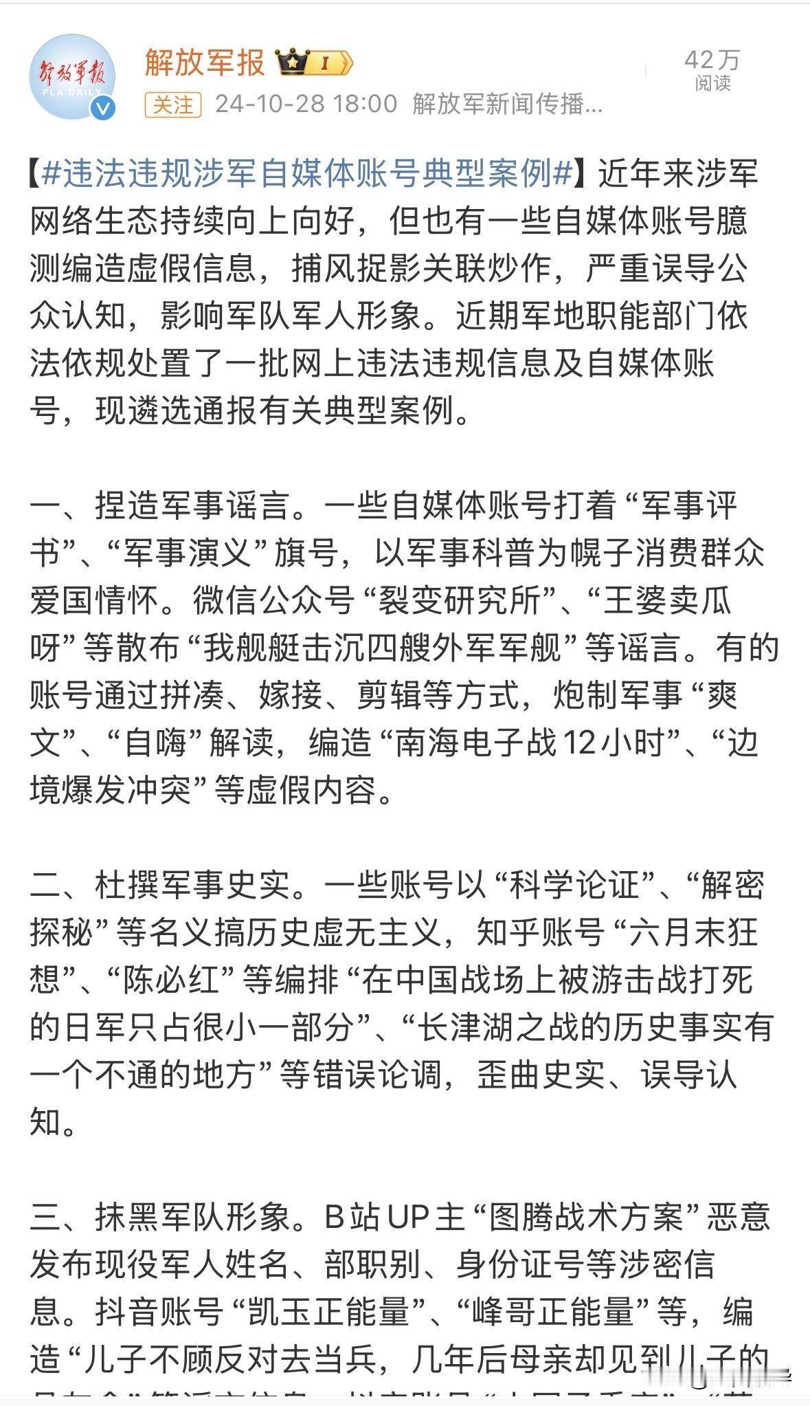 主观臆测,胡乱编造,捕风捉影,关联炒作,这些形容词,是官方定义的,虽然是两年之前说的,但是放在现在,依然合适,很多博主,为了流量为了带货,手段无所不用其极,由于影响太大了,以至于官方出手进行整治,之前官方不出手不处理不解释,那些认知有限的人,还每次都觉得是官方默认了,他们口头禅就是,既然是假的,为什么官方不出面解释,之前本人进行解释时,他们会扣上不爱国的帽子,还说本人明显是酸别人和眼红别人,后来官方这么说,不知道那些认知有限的人,会给官方扣上什么帽子,拭目以待。