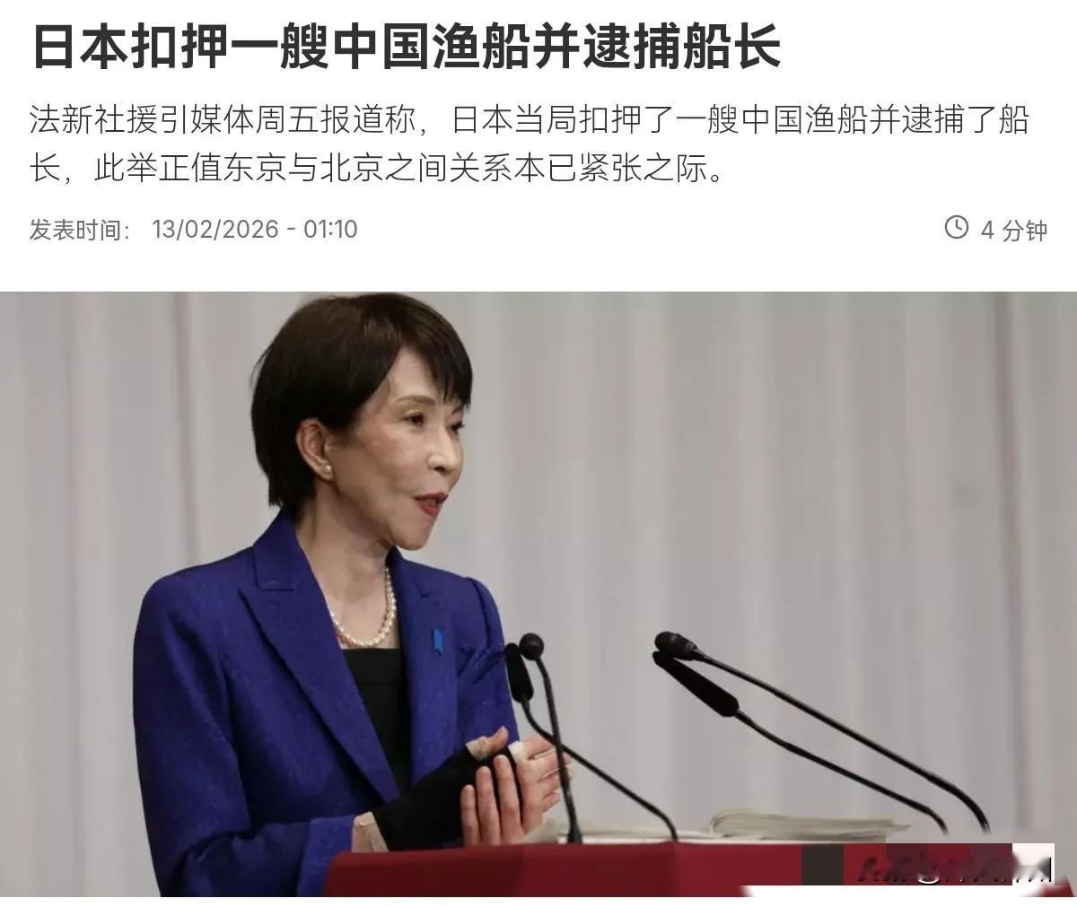 非常嚣张!日本对中国渔船进行扣押,并逮捕船长!2月13日,根据法新社报道,法媒称日本当局扣押了一艘中国渔船并逮捕了船长,此举正值东京与北京之间关系本已紧张之际。日本渔业厅表示,该船在日本长崎县(西南部)外海的“专属经济区”内无视停船命令。中国船长接到渔业检查员的停船检查命令,但该船未予配合并逃离现场。因此,船长被逮捕。 评几句: 日本在中日关系本就敏感的时刻,突然扣押渔船、带走船长,这一行为实在令人难以接受。 嘴上说着要改善双边关系,行动上却频频采取强硬手段,把本可以沟通解决的渔业问题,故意升级扩大,这种说一套做一套的做法,根本不利于两国关系发展。 海洋问题复杂敏感,更需要冷静理性,而不是动不动就动用强制手段激化矛盾。 中国渔民的合法权益,我们坚决维护,任何单边强硬做法都解决不了问题,只会让矛盾越来越深。 我们强烈敦促日方立即妥善处置,尽快放人放船,停止制造对立,真正用实际行动维护双边关系稳定。