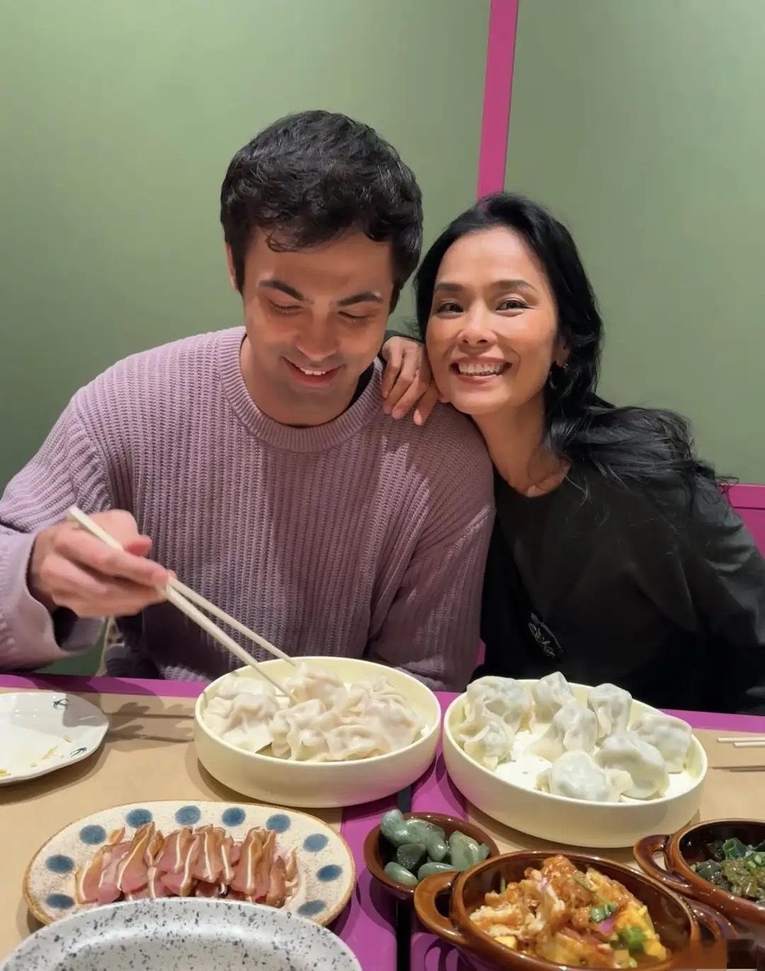 韦唯分享和二儿子一起吃饺子合影,满满的年味儿,满满的爱意!