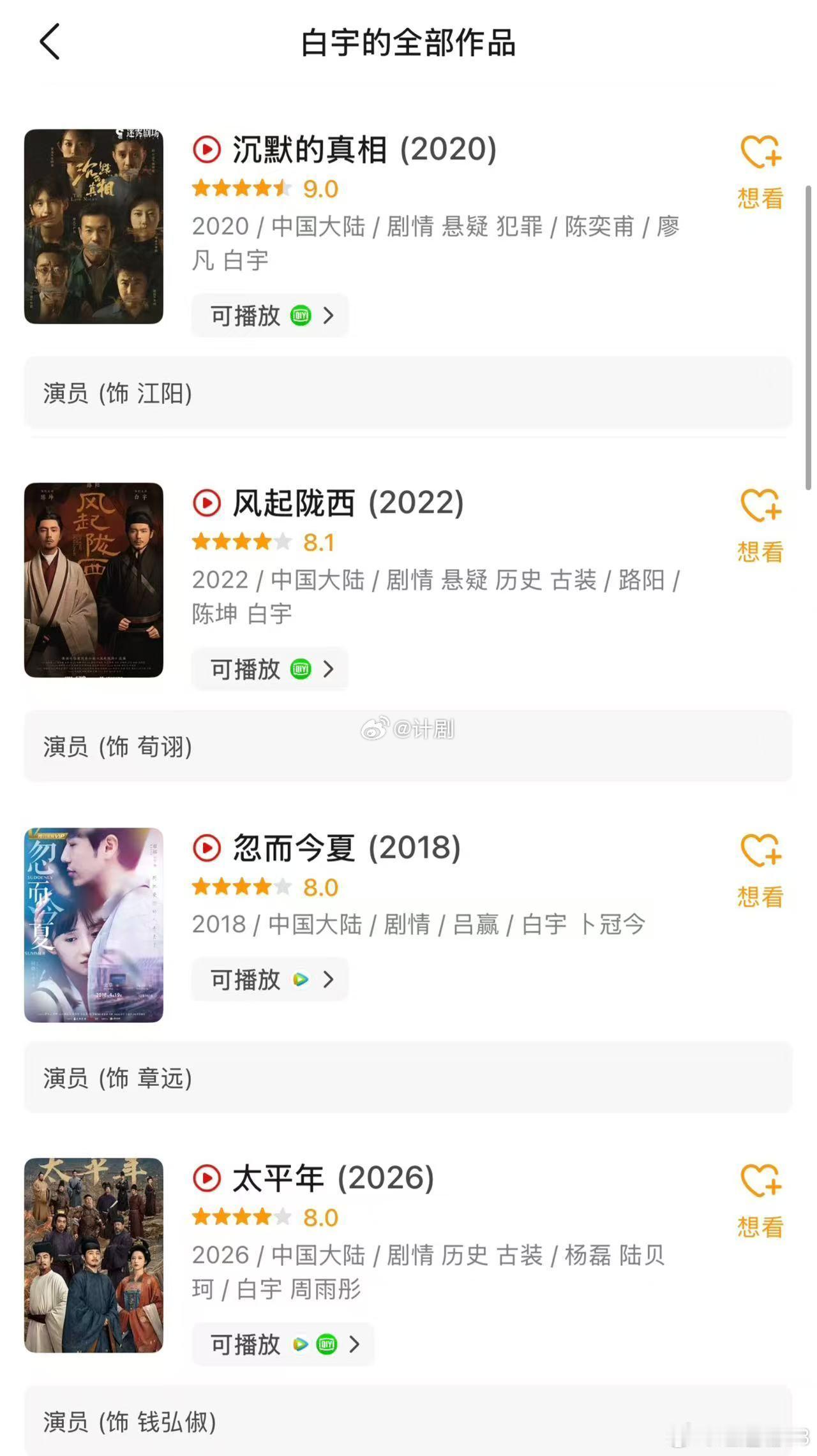 白宇豆瓣四部八分以上剧 谁能想到江阳和荀诩是同一个演员演的,一个沉重到让人喘不过气,一个轴得可爱又机灵,白宇把自己揉碎了塞进每个角色里,看他的戏永远不会串戏。