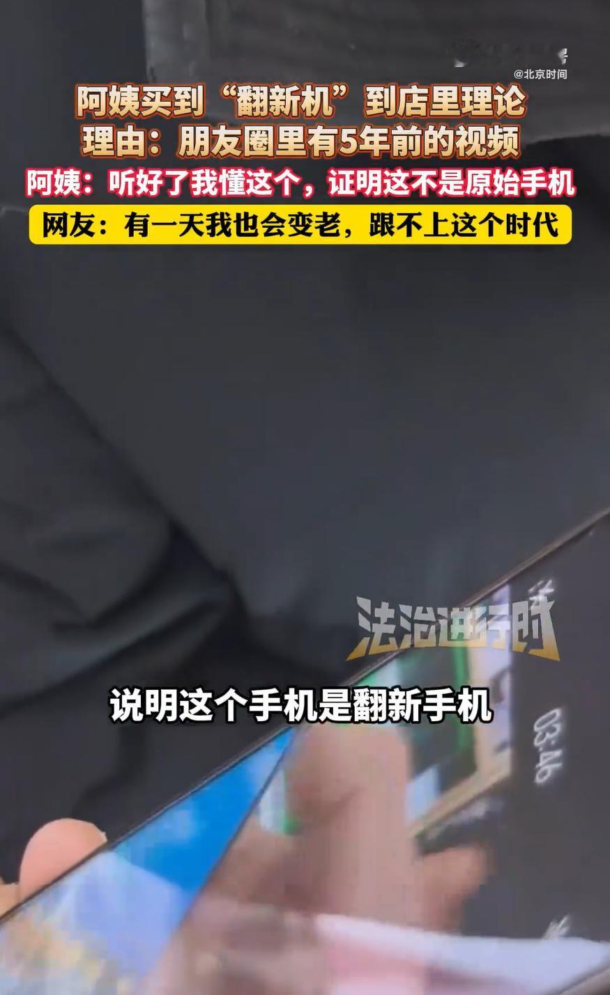 “被气笑了”黑龙江,一位阿姨在手机店里买了部新手机,可过了两天又找回来,言之凿凿地说是买到了6年前的翻新机,老板懵了,这手机型号才刚出一年,一问才知道,大妈在手机里翻到了自己6年前发的朋友圈。网友:如果有秦始皇的图片,她认为是2000年前的产品了 当时大姨进店时,情绪相当激动,老板以为哪里出了问题,结果大姨把屏幕怼到他脸上:你看看,2020年的东西,你这手机是六年前的翻新机!我懂这个 老板当场懵了。这款机型上市还不到一年,他上哪儿整六年前的库存去? 但他没急着争辩,先凑过去看了眼大姨的手机屏幕。朋友圈置顶位置,一条2020年6月的视频,是大姨本人发的 大姨更来气了:我朋友圈咋会有2020年的东西呢?我这是新手机!她认定这是证据,是老板狡辩不过去的铁证。新手机里不该有旧东西,这个逻辑她捋得顺顺的 老板想了一下,问大姨,您换手机的时候,微信聊天记录是不是都导过来了? 大姨说是啊,那孩子帮我弄的 老板说,那就对了。您这朋友圈是从旧手机里一起导进新手机的,不是手机自带的,是您自己的东西 大姨愣了愣,低头划了几下屏幕,不说话了。后来她自己想明白了,有点不好意思,小声嘟囔了一句原来是这么回事,转身走了 这件事情,虽然听起来有点滑稽,但其实也能反映一些普遍的问题。现代人对技术的认知,有时候真是落后于实际进展。尤其是老年人,虽然大家都在日常使用智能设备,但像大妈这样,在面对陌生的科技时,反应可能不太灵敏 大姨的逻辑其实挺硬的:新手机里出现老内容,这不合常理。她不是胡搅蛮缠,她是在用自己的常识推理。问题出在,她对数据迁移这件事没概念。这不是笨,是数字生活的知识断层 对他们来说,手机是个独立的物件。旧手机里的内容是旧手机的,新手机里应该是空的、干净的、出厂设置的模样。当他们打开新手机,看见自己五年前发的朋友圈整整齐齐躺在那儿,第一反应不是我穿越了,是你骗我了。这不叫抬杠,这叫认知错位 我们笑大姨不懂迁移,大姨只是不懂迁移。但我们懂的那些东西,又有多少是真正讲清楚了的。下次帮长辈弄手机,多花一分钟说一句:我把你旧手机里的东西都搬过来了,你看看都在不在