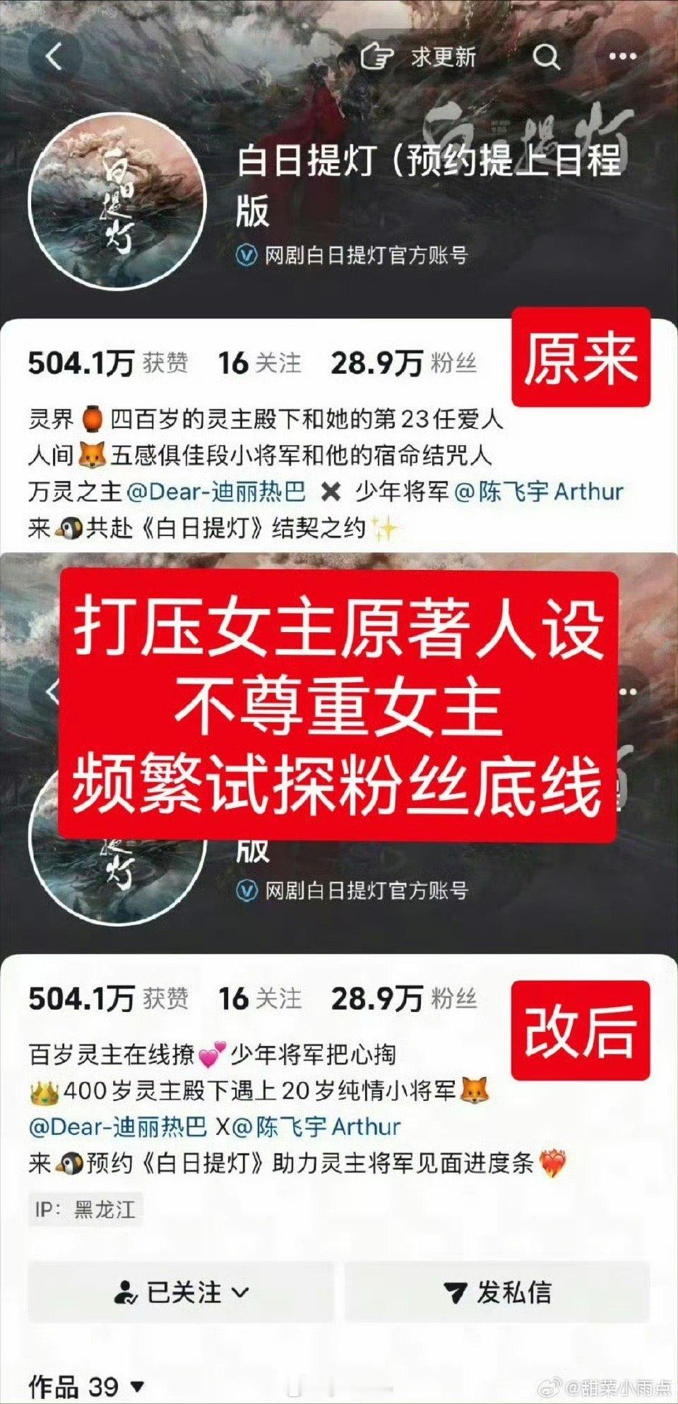 巴粉白日提灯维权中 不给男主上桌,两个二人转谈恋爱的古偶就别大女主了