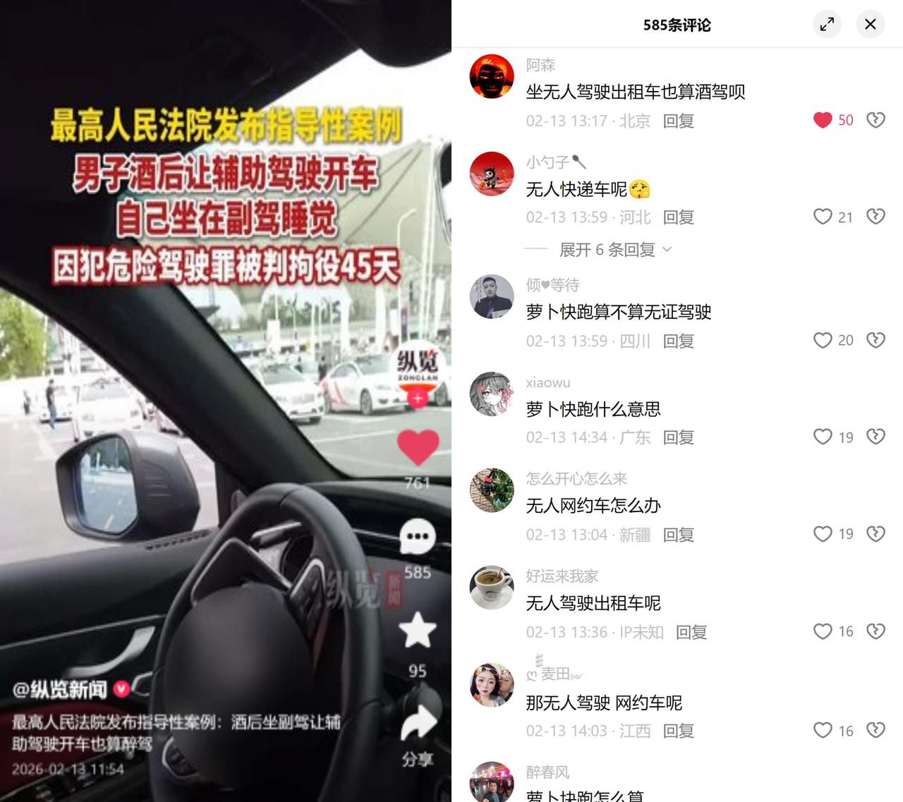 酒后坐副驾,竟被判醉驾! 官方刚发布指导案例,浙江一男子酒后开带2级辅助驾驶的车,装了智驾神器逃避监测,自己移去副驾睡觉。 最后因危险驾驶罪,被判拘役45天。 很多人看完直呼离谱,说法律管太宽? 真不是!这事儿的核心,是90%的人都没搞懂:2级辅助驾驶≠自动驾驶! 按国标,0-2级都是驾驶辅助,系统根本没能力全程接管,驾驶人必须全程盯着,这是法定的监管义务。 你要是坐L4级的无人出租车,那是系统担主要责任,但现在路上跑的绝大多数车,还都是2级辅助! 这男子不仅酒后激活辅助驾驶,还装配件逃避监测,说白了就是明知要担责,还故意钻空子。 哪怕他没碰方向盘,只要他是激活系统的人,又没履行监管义务,那他就是驾驶主体,该担责就得担责! 看看大家全是问萝卜快跑咋算的,就知道多少人把辅助驾驶当自动驾驶用。 别再犯这种低级错误了,辅助驾驶只是搭把手,不是替你开车!法律边界在这儿摆着,别拿自由开玩笑!