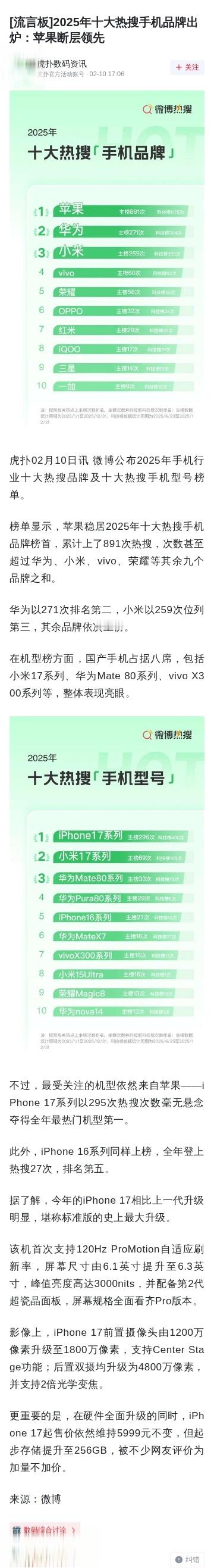 2025年十大热搜手机品牌出炉,苹果断层领先