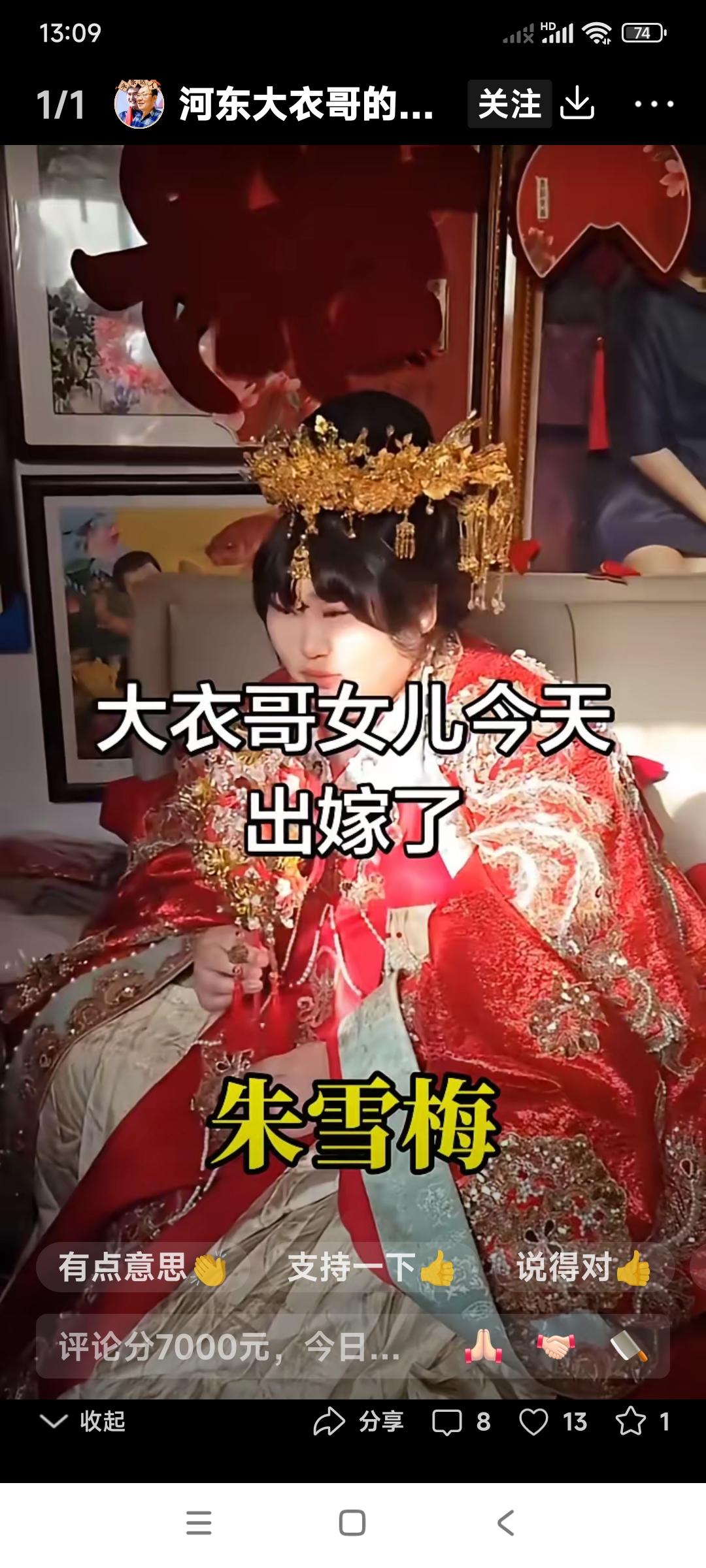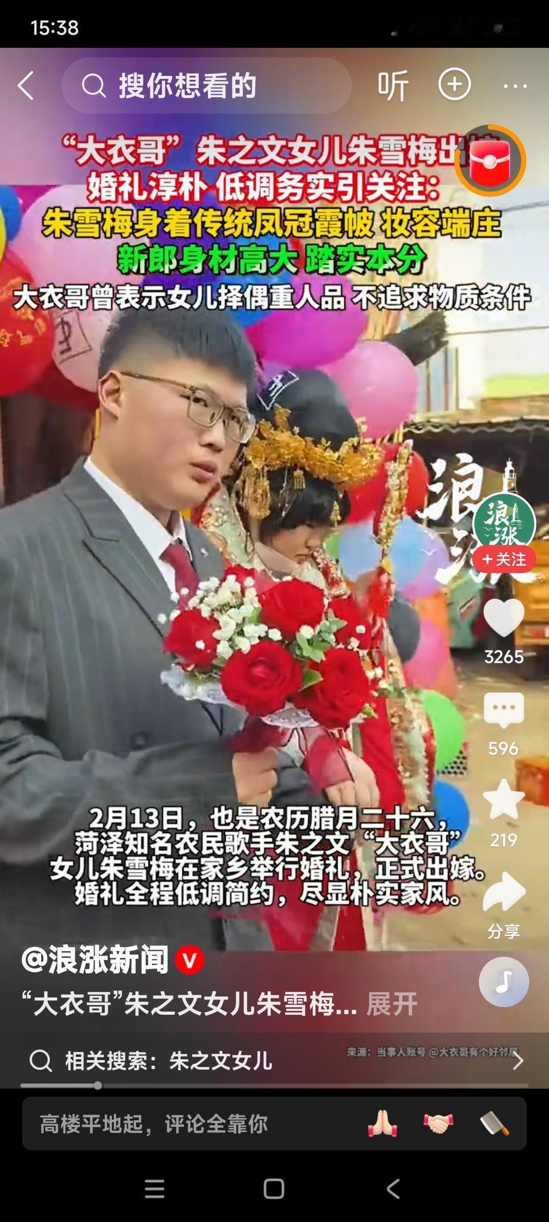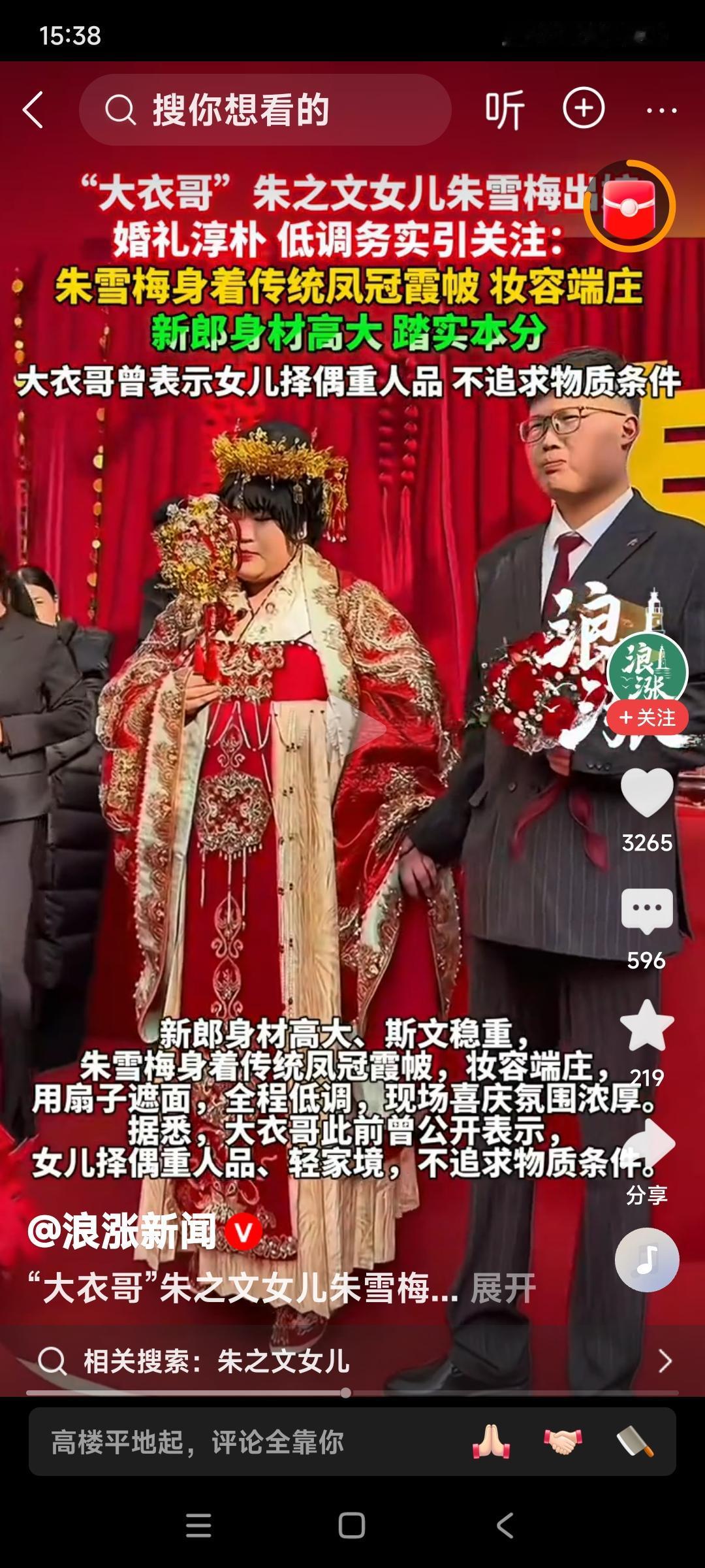大衣哥朱之文的千金小姐,身价千金的朱雪梅出嫁了。 祝福小两口百年好合。