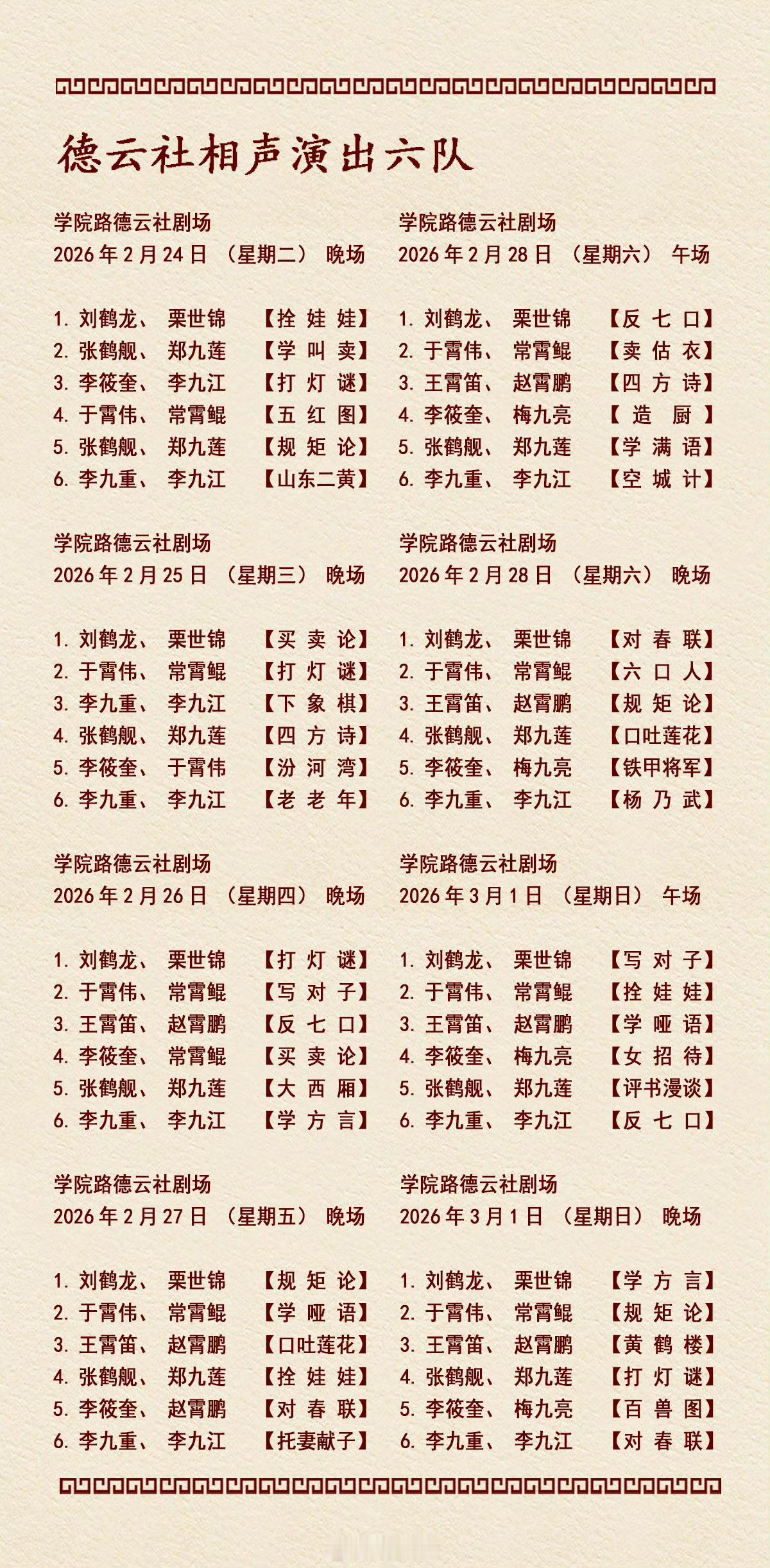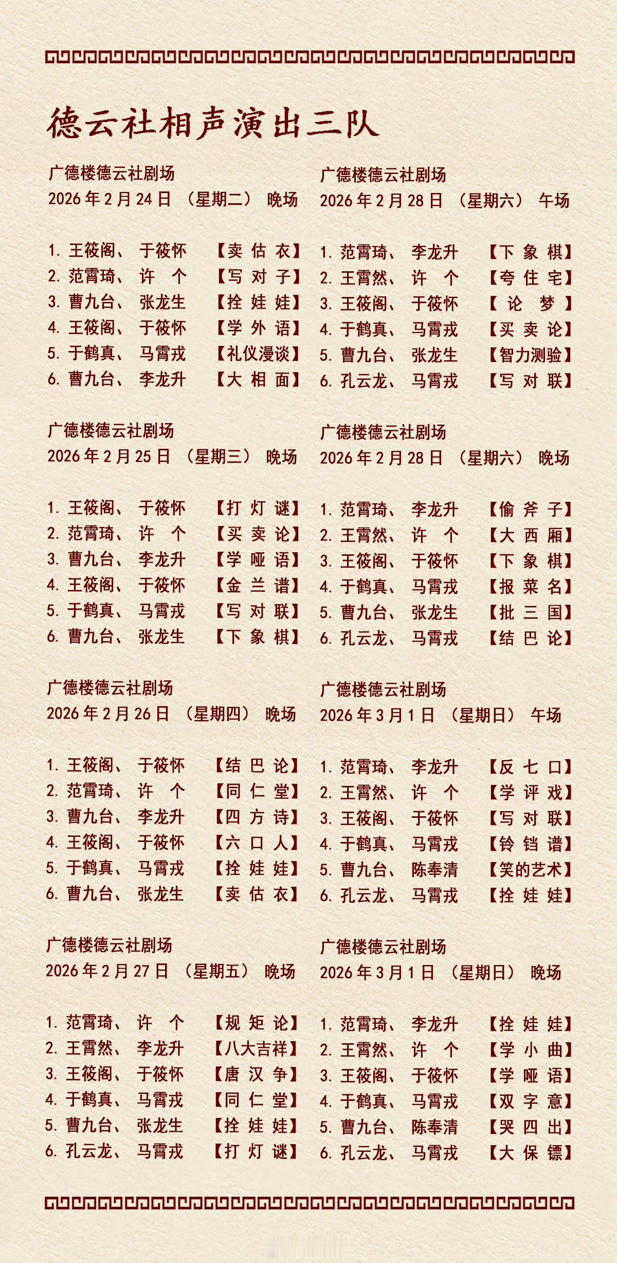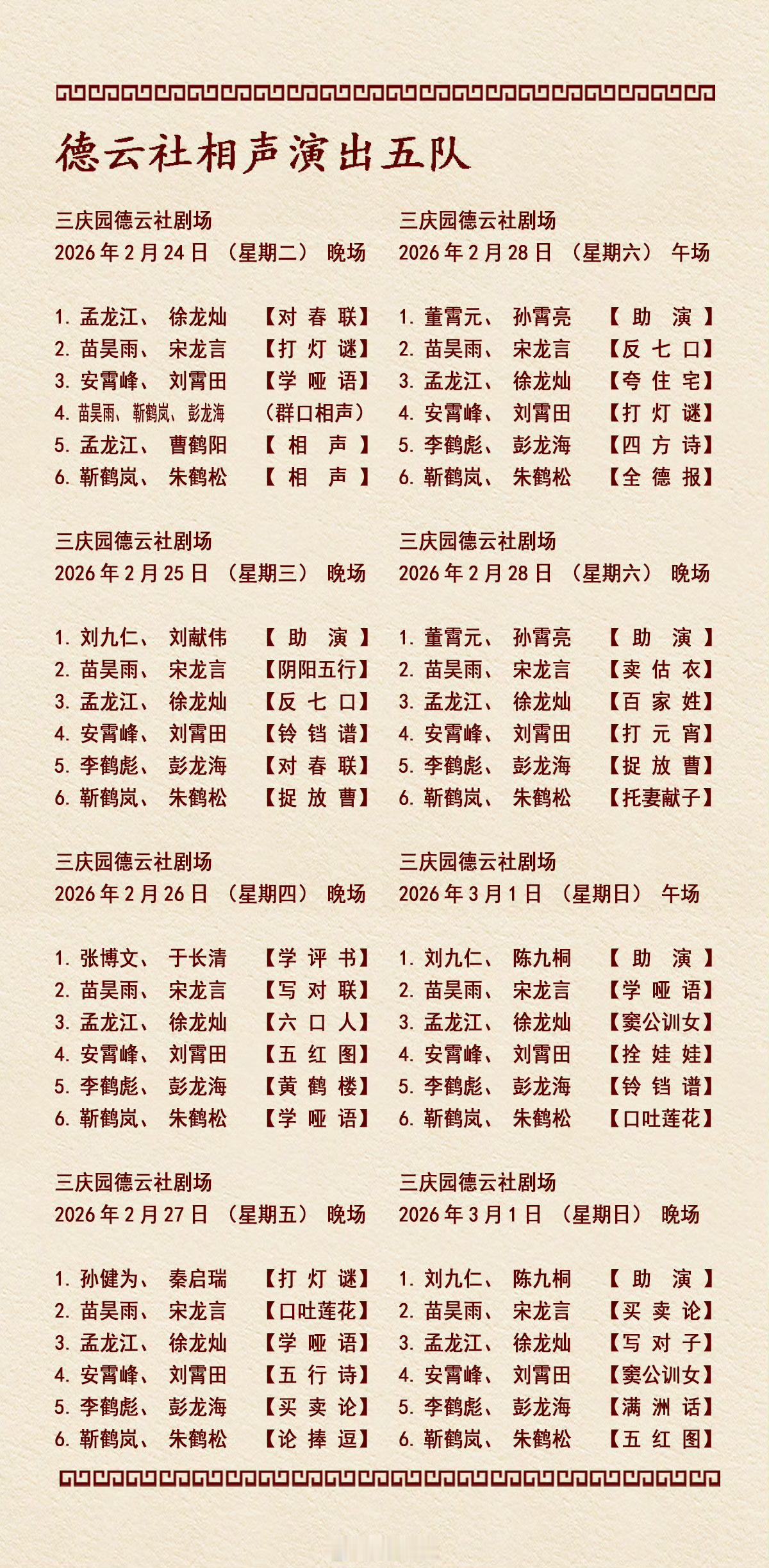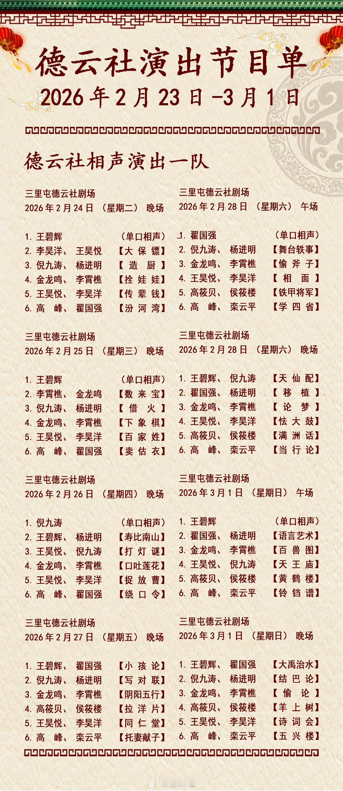 德云社各队演出节目单,有啥看点一起分享