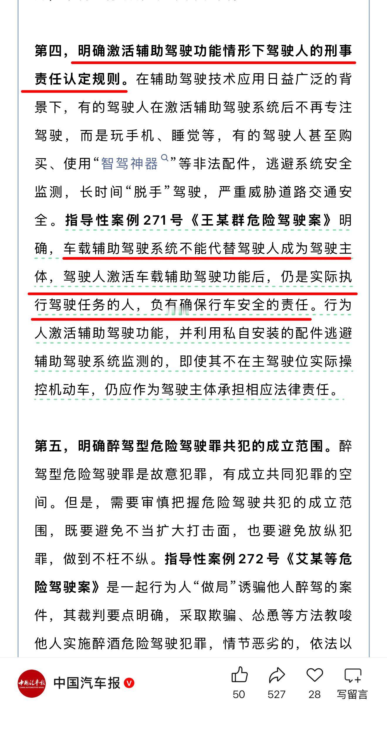 简单点就是,开启辅助驾驶后责任人就是驾驶员。
