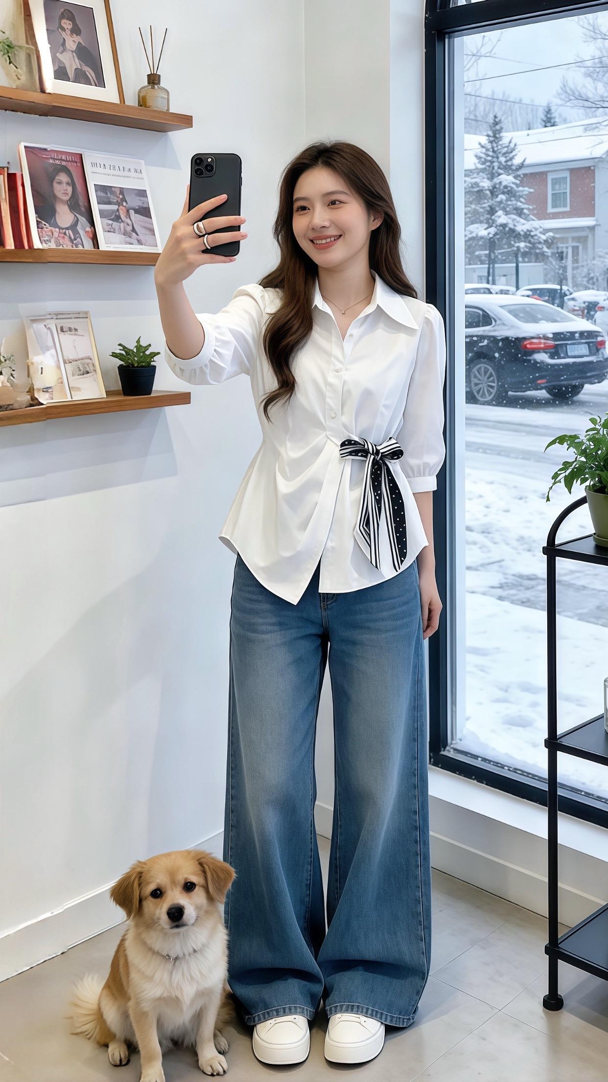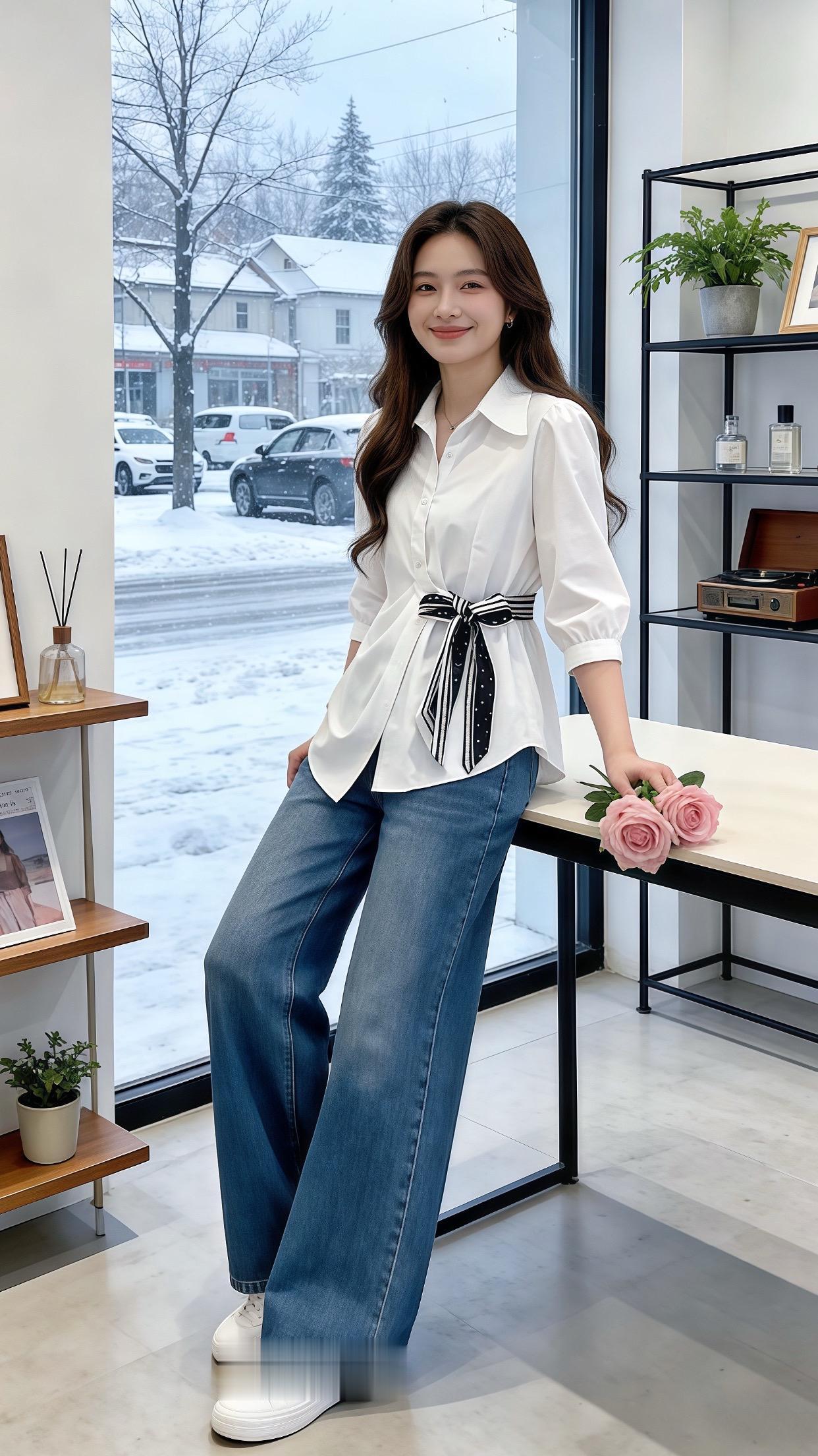 元气满满的微笑,粉嫩毛衣搭配牛仔裤,温暖又时尚!😊✨分享一张随手拍发现美好,分