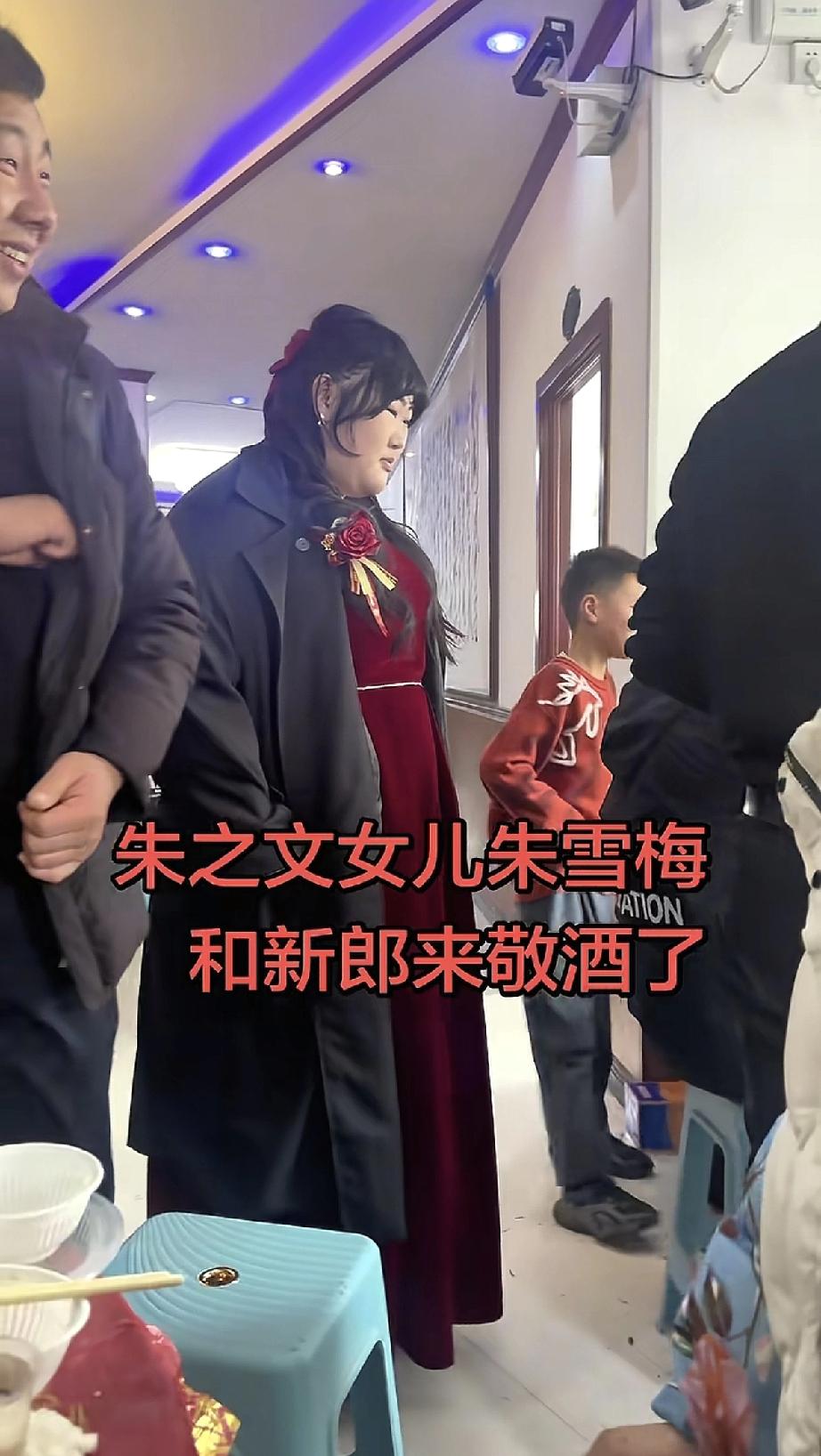 大衣哥女儿朱雪梅出嫁,回到酒席敬酒,太胖了,该减肥了,体重像是超过200斤了,这