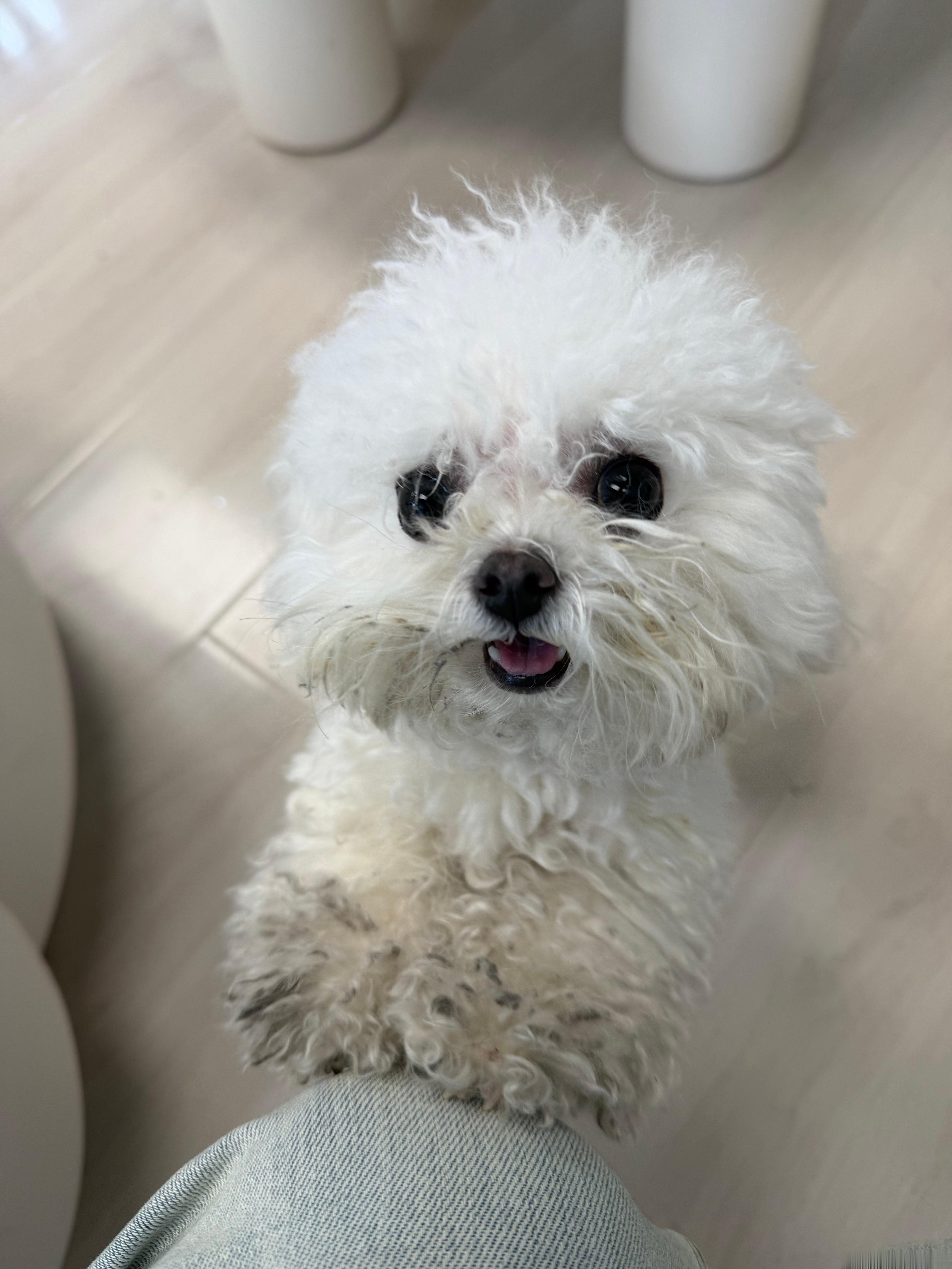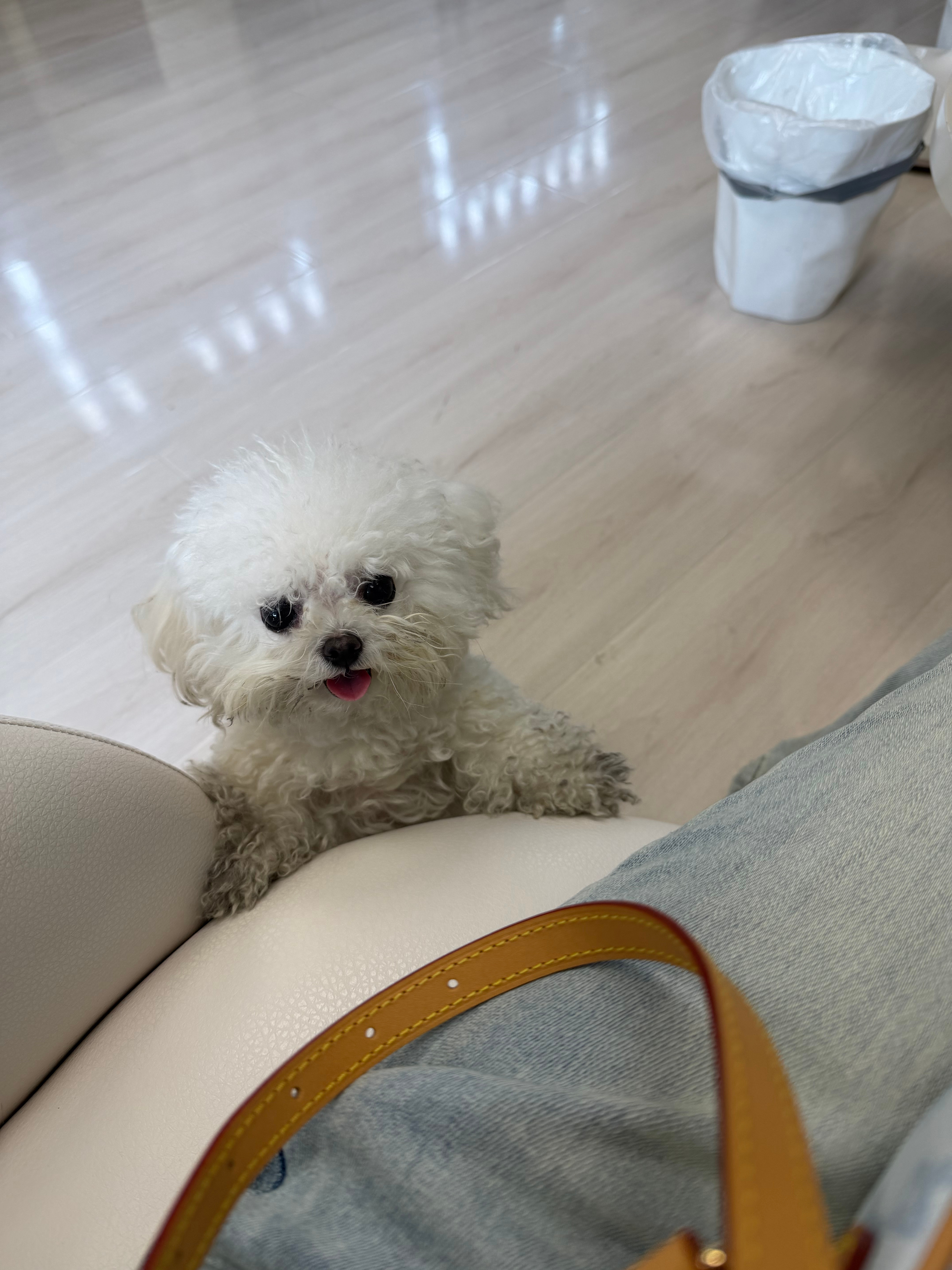 去弄头发,店里这只小比熊也太热情啦它一直扒拉我可爱小狗 北京·北关