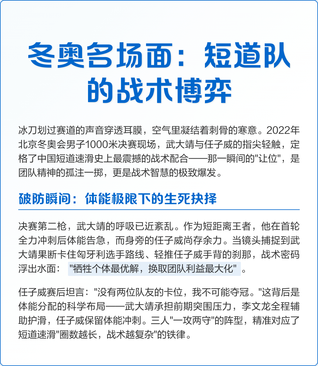 王濛说不做短道速滑就去踢足球 冰刀划破寒夜,2022年北京冬奥会男子1000米决赛中,武大靖与任子威的战术触碰,展现了中国短道速滑团队智慧与牺牲精神的完美融合。回顾冬奥名场面,短道队的战术博弈。王濛对足球的喜爱是认真的