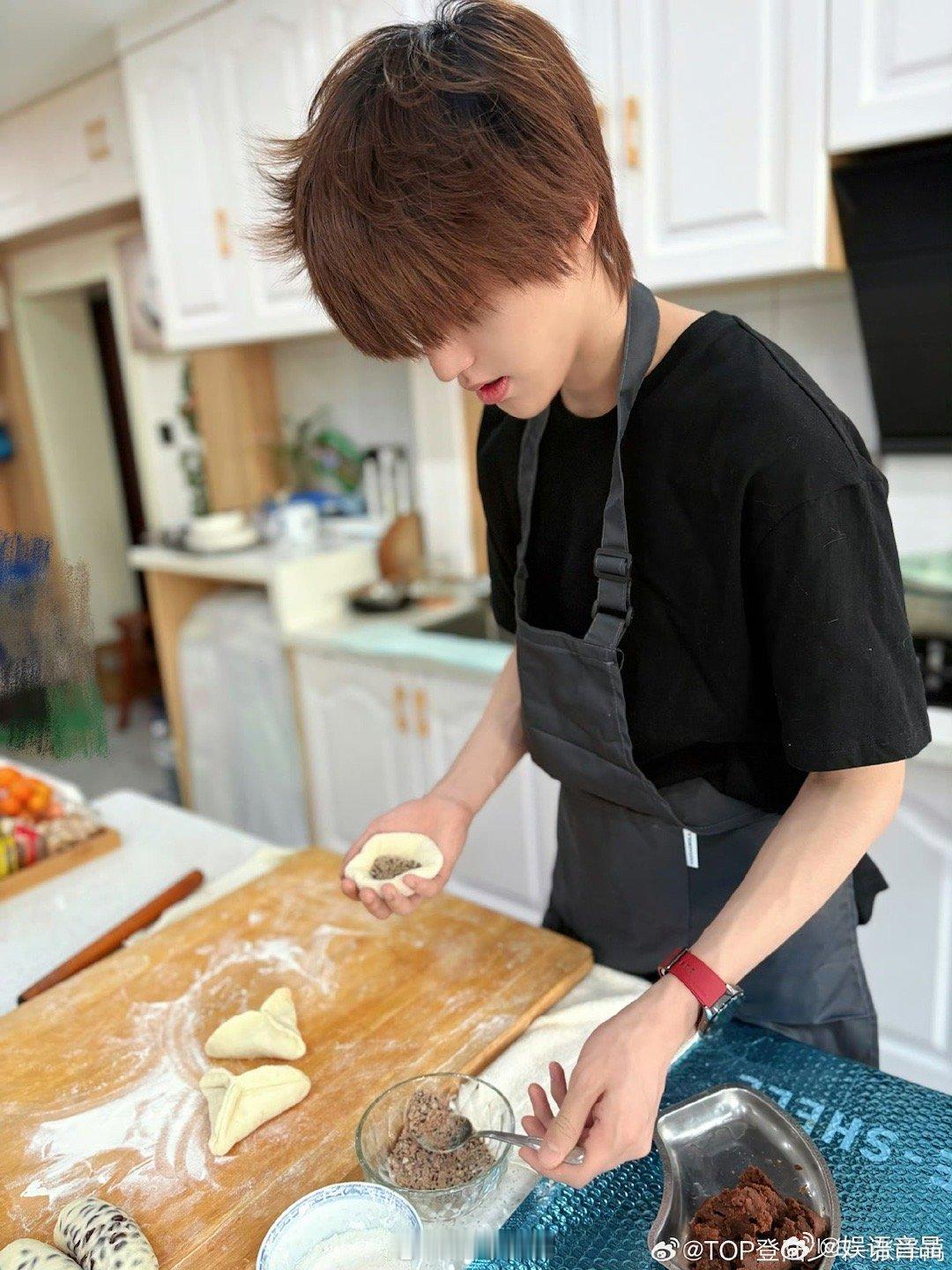 张泽禹做豆包豆沙卷蜜豆卷糖三角面团在他手里很听话。豆沙卷切段大小差不多,蜜豆卷卷得层层分明。厨房灯光打在他侧脸,这个画面很安静。