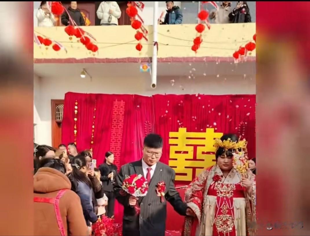 大衣哥女儿朱雪梅结婚啦,这可算是让大衣哥两口子了却一桩心事。新郎胖乎乎的,看着憨厚老实。 婚礼现场超热闹,新郎一表人才,开着豪车去迎亲,迎亲队伍里都是价值不菲的车,倍有面儿。上午10点,新郎手捧鲜花和姐姐来到朱楼村,自信又帅气地走进大衣哥家。 村民说新郎是隔壁村的,年轻还有自己的事业,大衣哥和大衣嫂对这个女婿特别满意。大衣哥给女儿的陪嫁物品价值破百万,还有给女婿的固定资产和其他帮助。大衣哥露面时特别开心,虽然不舍女儿出嫁,但这毕竟是朱家的大喜日子。好多小伙子都羡慕这位新郎,成了大衣哥的女婿,往后日子肯定差不了!