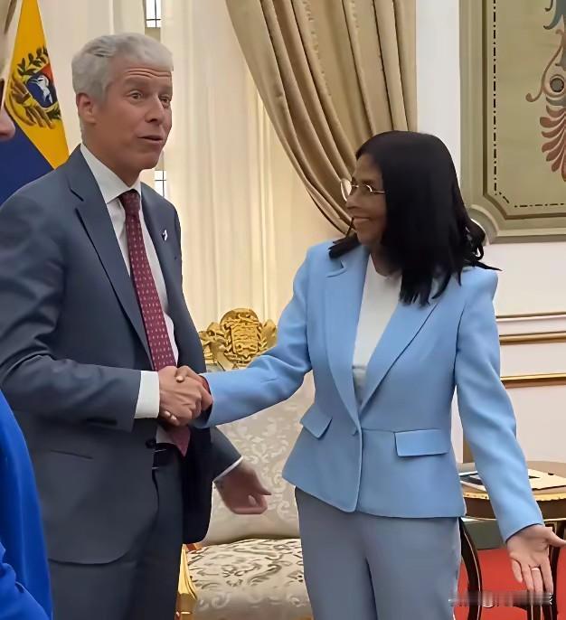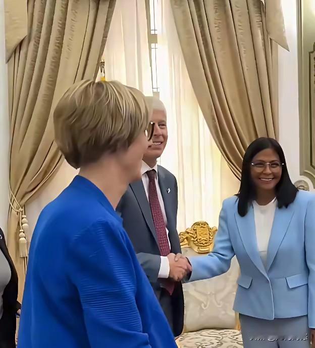 委内瑞拉这个女代总统与美国客人开心的交流着,通过流出的照片能够感受到,她表现的非常轻松,穿的也比较清晰,交流的氛围也比较融洽,如果马杜罗看到这样的画面,不知道会有什么样的感想,本人看到这样的画面,倒是突然想起了一首老歌,歌声唱到:有谁见到新人笑,有谁见到旧人哭……