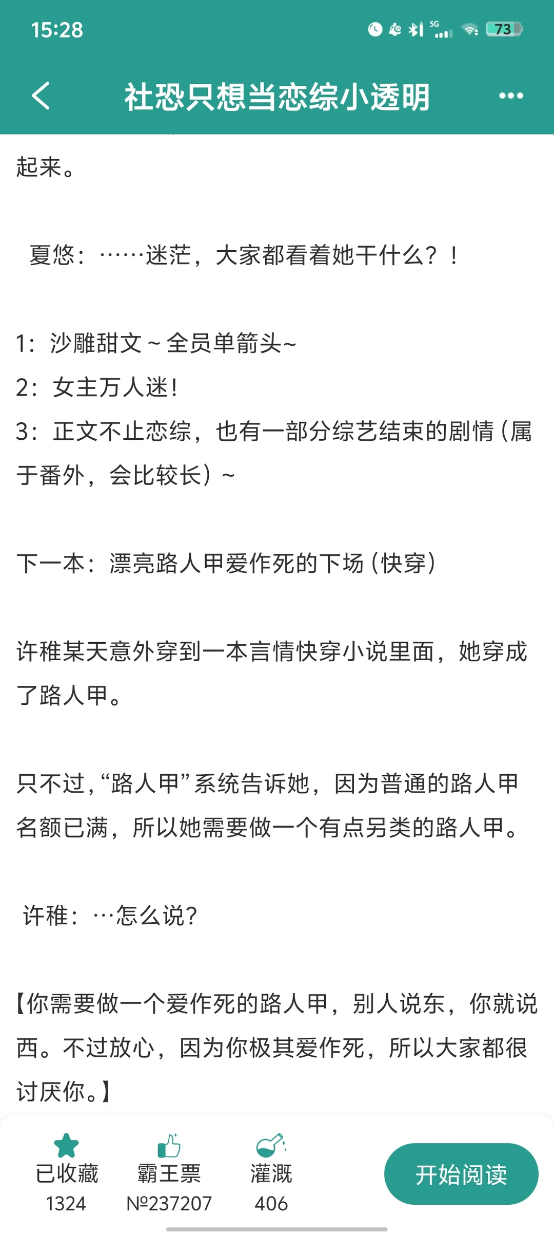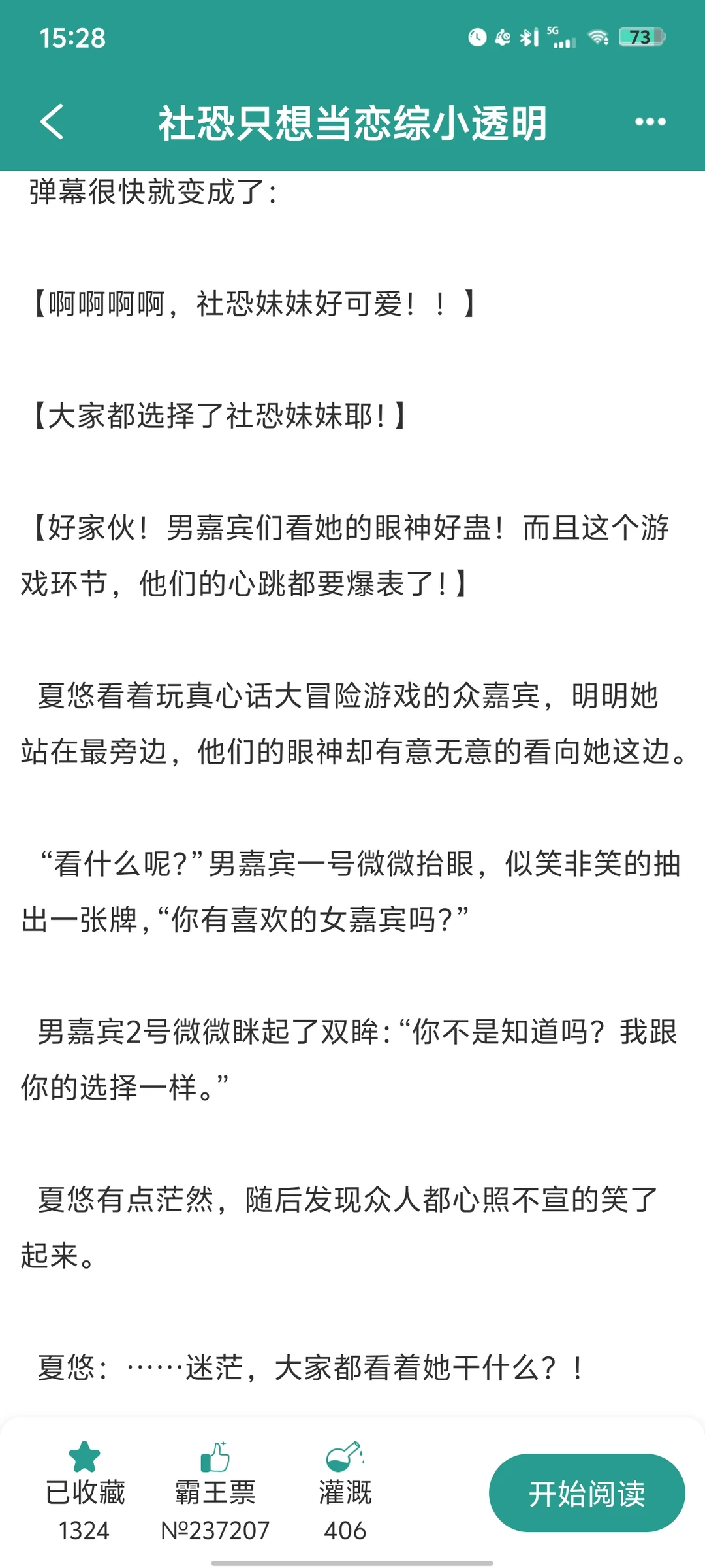 《社恐只想当恋综小透明》by氏树 正在连载的小说,快60章了 女主是一个妥妥的社恐,却莫名其妙穿进了恋综❗️ 因为她自带女主光环,加上系统故意只让男嘉宾们看到她头顶代表紧张程度的气球…[气球R] 所以她被富二代们盯上了,富二代们就喜欢看她紧张的模样🥵 他们都开始疯狂捉弄她,剧情又搞笑又甜[红色心形R]非常香的万人迷恋综小说❗️ 已经20多万字了好肥!喜欢看万人迷的千万不要错过~