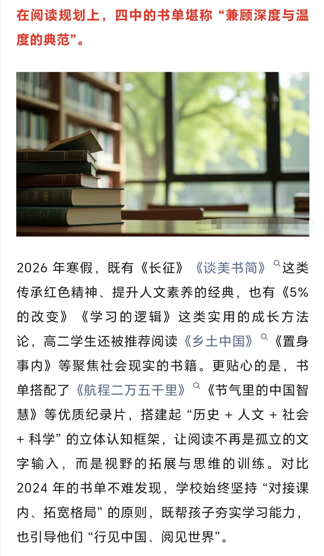 书单真的太会了!既有《长征》《谈美书简》这类经典打底,也有《5%的改变》这种实用成长书,高二还会读《乡土中国》《置身事内》看社会现实
